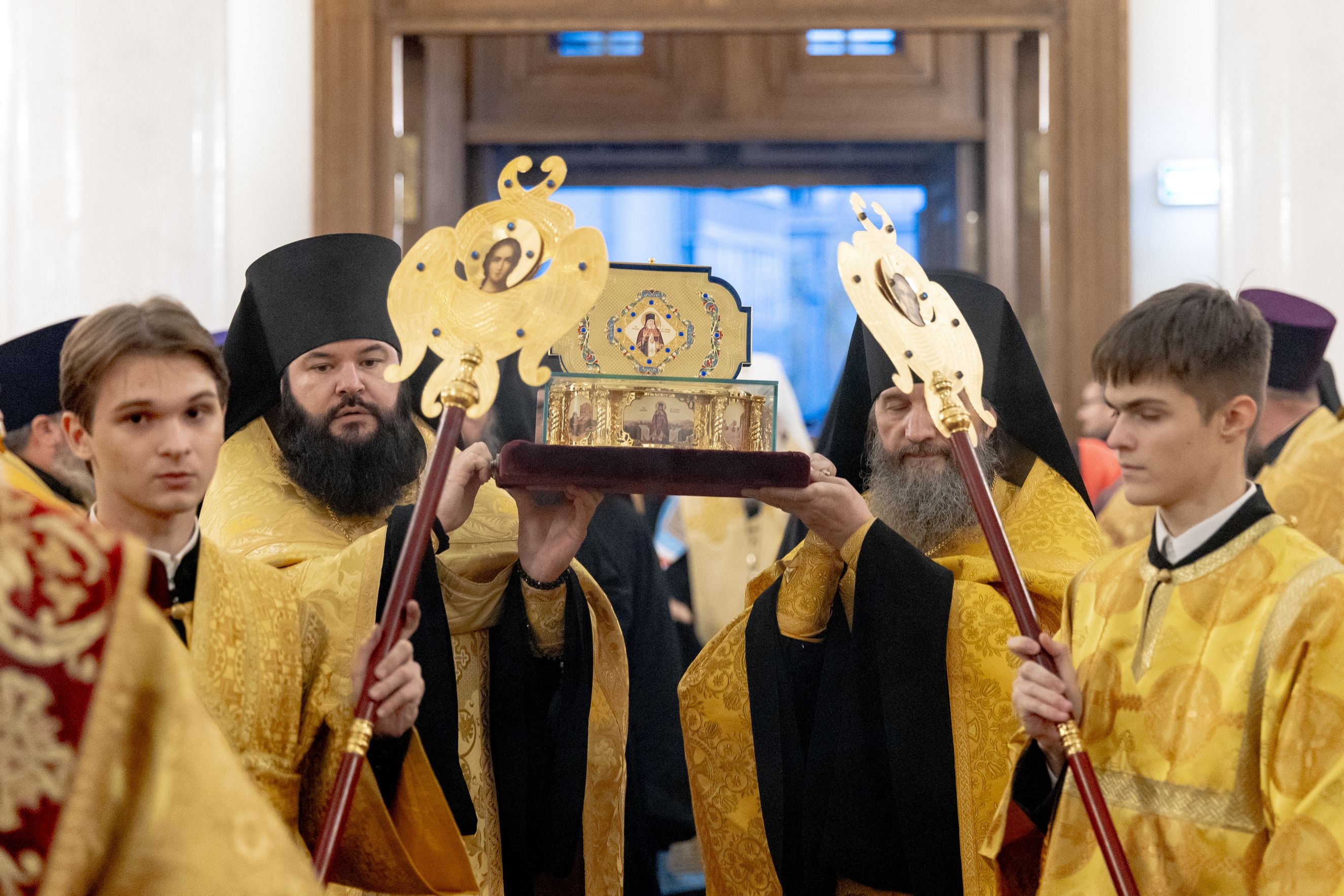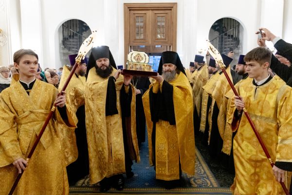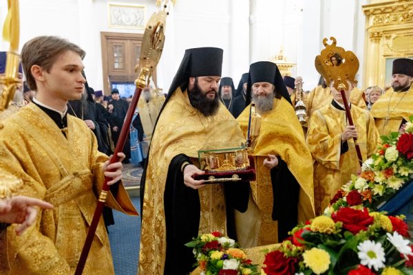 Под пение тропаря святому ковчег внесли в кафедральный собор. Архипастыри совершили славление святителю Луке.