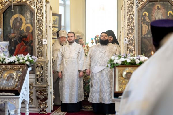 Его Высокопреосвященству сослужили секретарь Татарстанской митрополии иеромонах Кирилл (Корытко), ректор КазДС, настоятель семинарского храма иерей Никита Кузнецов, благочинный I округа города Казани протоиерей Владимир Самойленко, ректор Саранской духовной семинарии протоиерей Алексей Зверев, ректор Самарской духовной семинарии протоиерей Максим Кокаев, начальник отдела докторантуры Общецерковной аспирантуры и докторантуры имени святых равноапостольных Кирилла и Мефодия, доктор исторических наук, профессор протоиерей Алексий Марченко, преподаватели Казанской семинарии в священном сане.