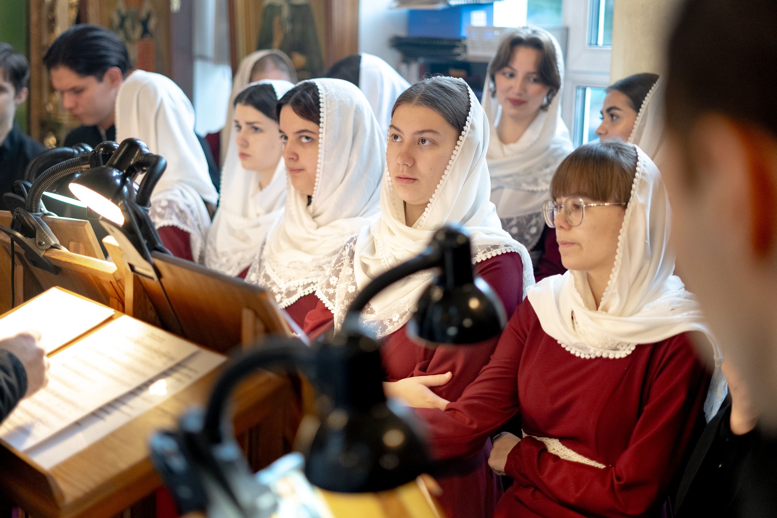 Богослужебные песнопения исполнил хор студентов под управлением Дениса Рогова.
