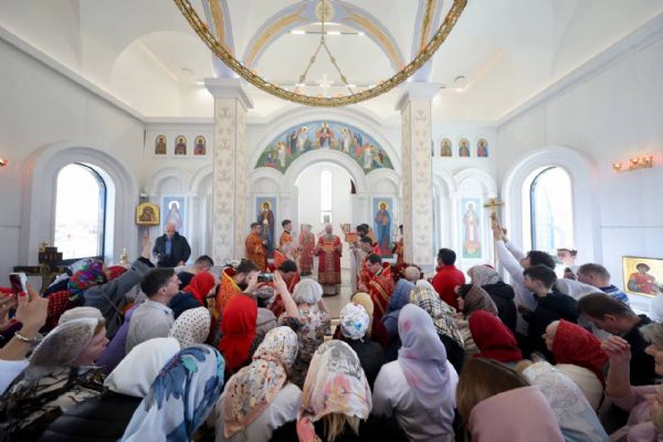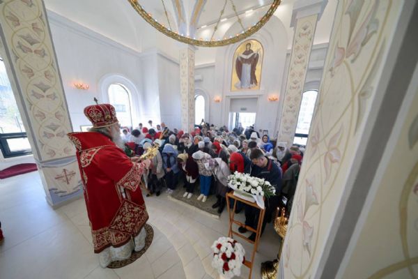 В четверг Светлой седмицы митрополит Кирилл совершил Литургию в храме иконы Богородицы «Целительница» на территории ДРКБ
