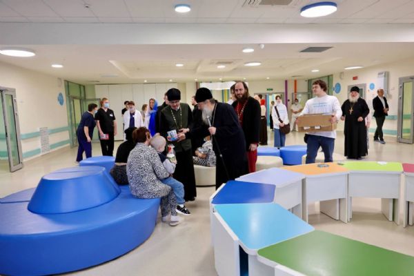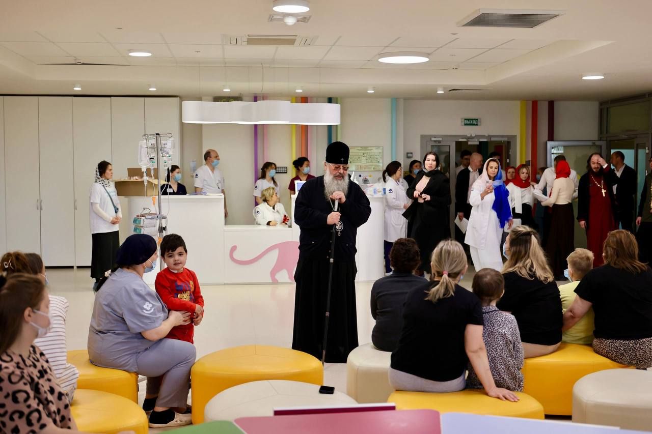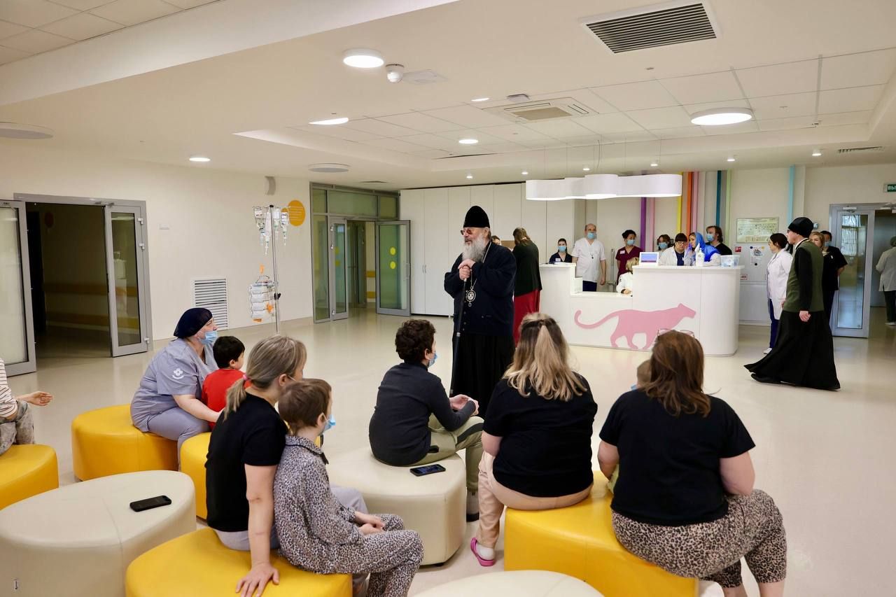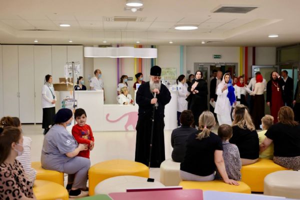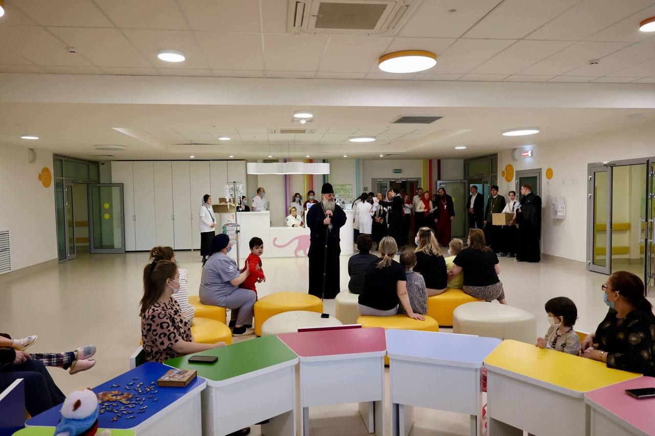 После богослужения митрополит Кирилл посетил Центр детской онкологии, гематологии и хирургии. Владыка передал детям пасхальные угощения, поздравил их с Воскресением Христовым и пожелал скорейшего выздоровления. Архиерейский хор исполнил праздничные песнопения. Затем архипастырь прошёл в больничные палаты и поздравил с праздником Пасхи пациентов, которые по состоянию здоровья не смогли присутствовать на богослужении и праздничном мероприятии в холле.