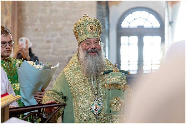 Присутствующие на богослужении священнослужители, монашествующие и миряне поздравили владыку с днём тезоименитства, вручили цветы и памятные подарки.