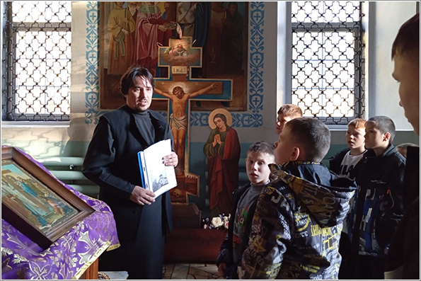 Перед входом в собор окормляющий приют священник Дионисий Васильев показал детям, как нужно правильно креститься. Затем диакон Дмитрий Русин провёл для детей экскурсию по Боровецкой церкви, рассказав об истории древнего храма, о его устройстве и святынях. После экскурсии дети в сопровождении взрослых поднялись на колокольню, где отец Дмитрий рассказал об истории церковных колоколов и показал, как нужно в них звонить. Каждый воспитанник попробовал себя в роли звонаря.
