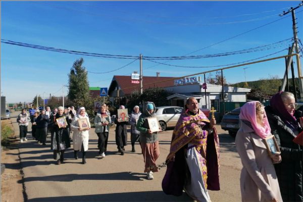 После Литургии все прошли крестным ходом по улице села, воспевая хвалу Богу, Божией Матери, величая святых мучениц Веру, Надежду, Любовь и матерь их Софию.