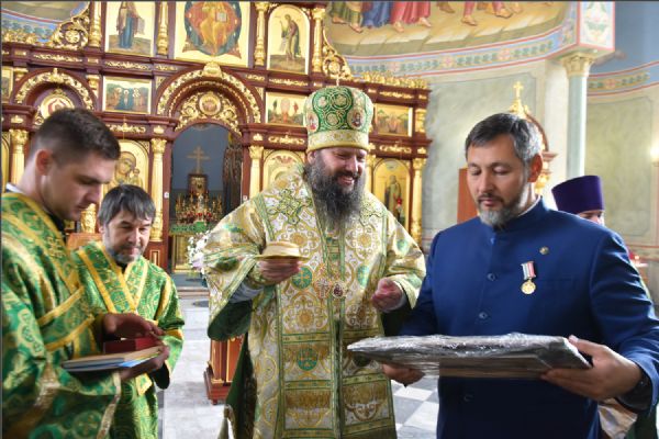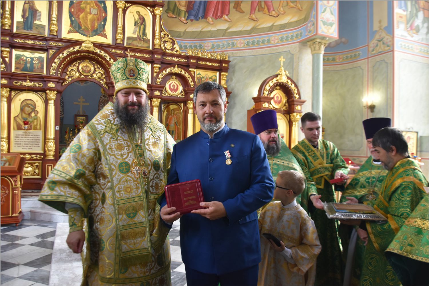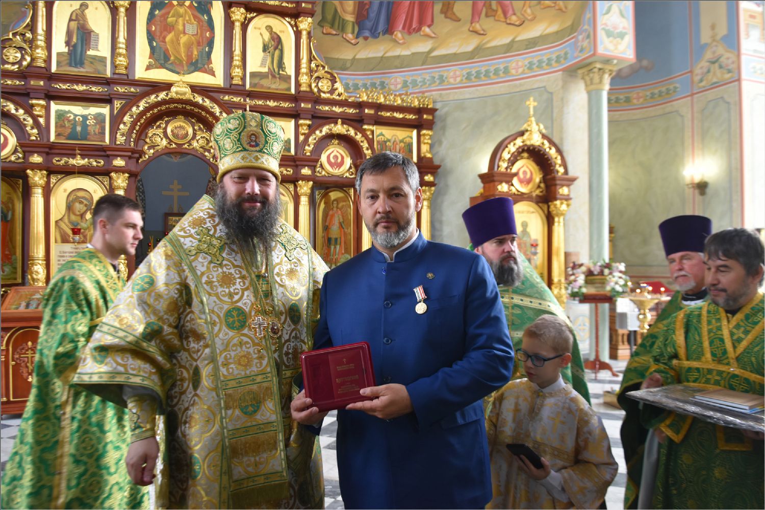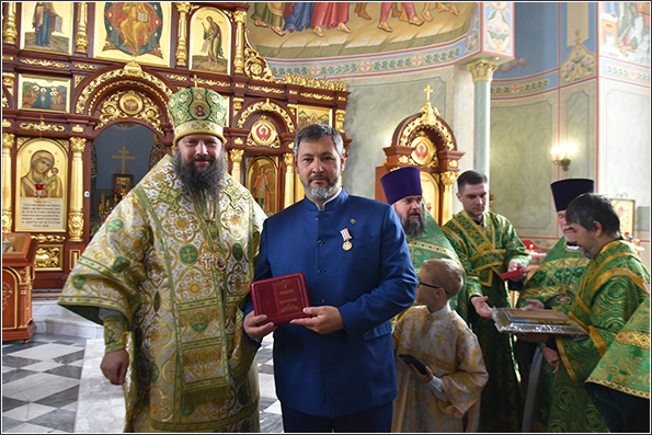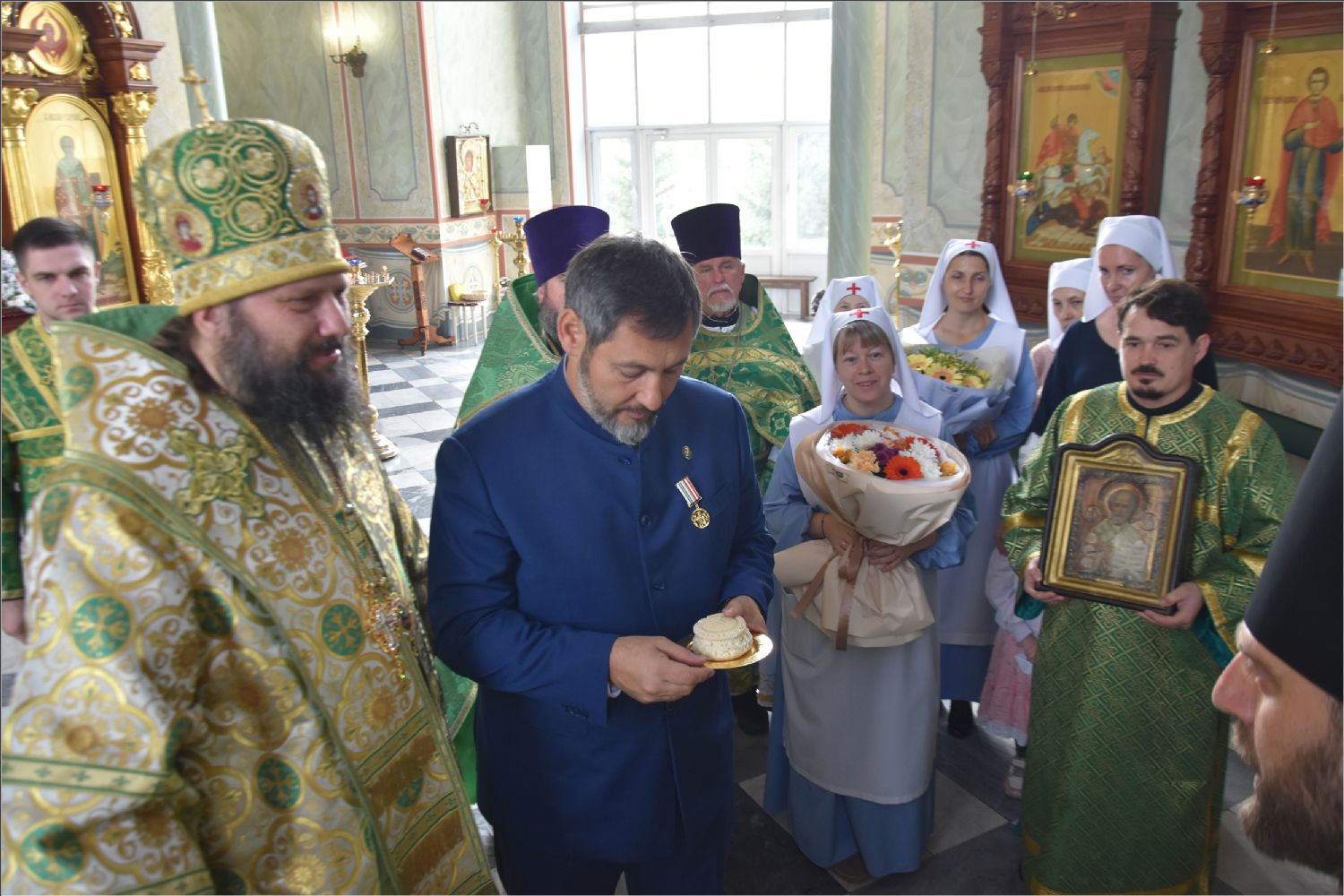 Благоустроителю храма прп. Серафима Саровского Олегу Коробченко в этот день его тезоименитства была вручена епархиальная награда — медаль 1 степени Набережночелнинской епархии — святых мучеников Павла Елабужского и чад его Бориса, Григория и Симеона. Владыка поздравил Олега Владимировича с именинами и преподнес имениннику богослужебную просфору, икону и книги о Задонском монастыре. От прихода прп. Серафима Саровского Олегу Коробченко подарили икону святителя Николая Чудотворца.