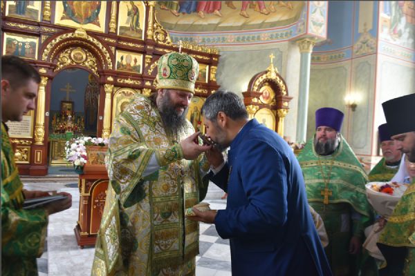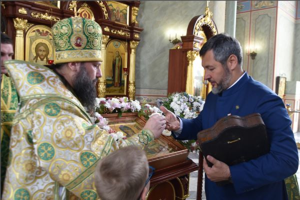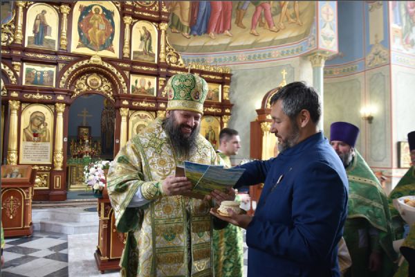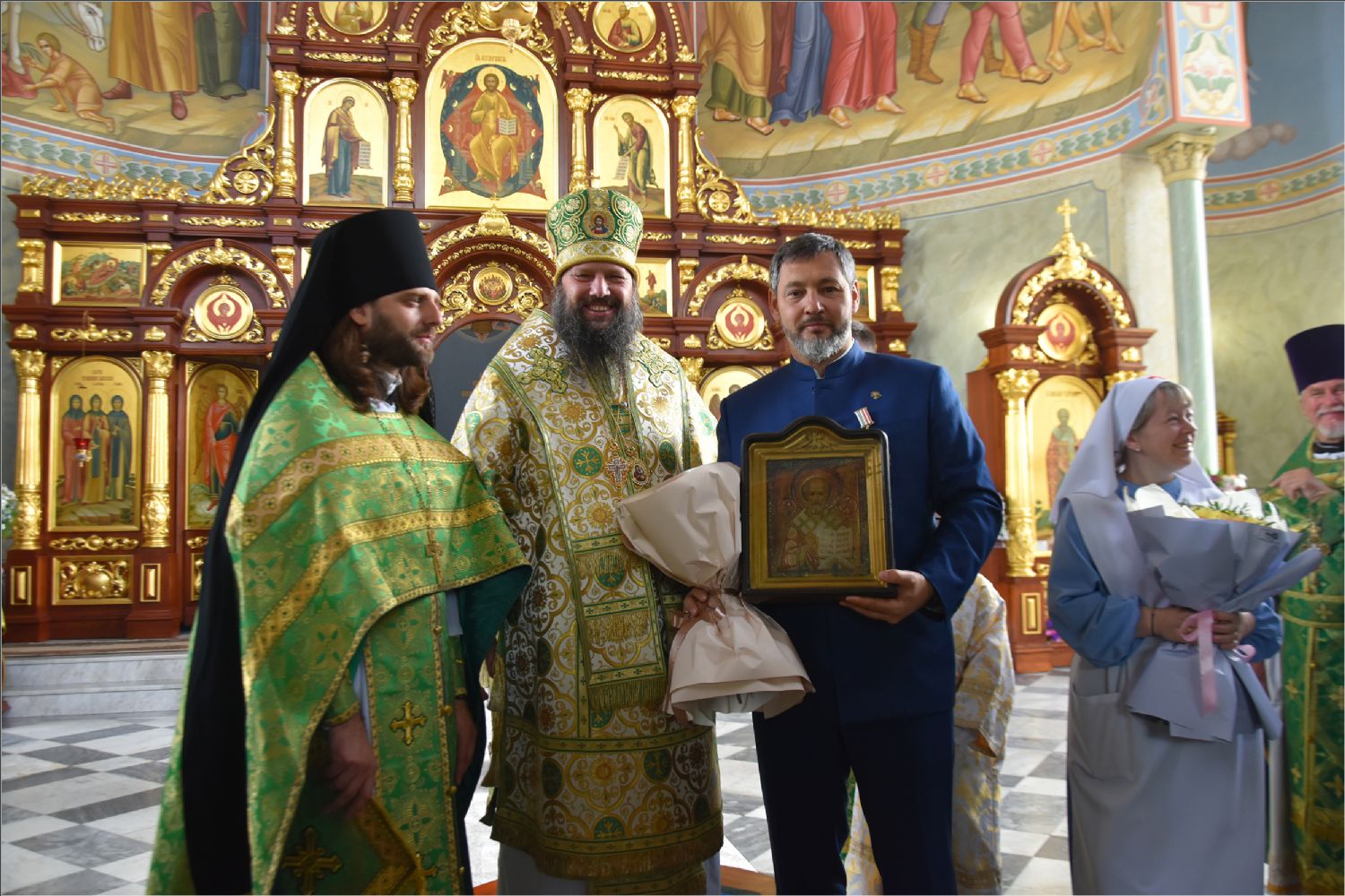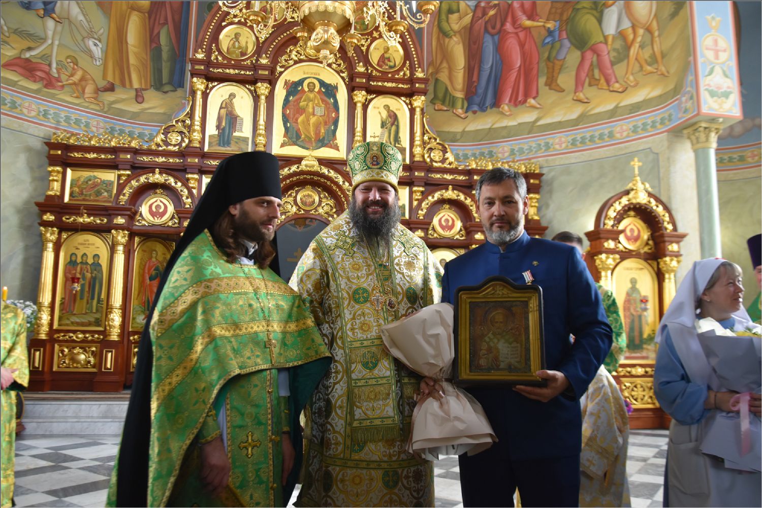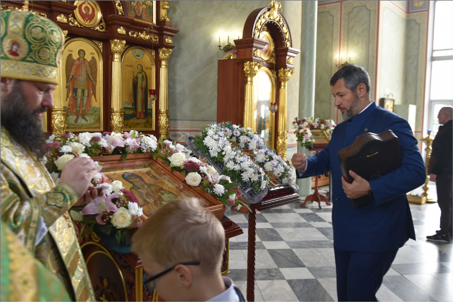 Благоустроителю храма прп. Серафима Саровского Олегу Коробченко в этот день его тезоименитства была вручена епархиальная награда — медаль 1 степени Набережночелнинской епархии — святых мучеников Павла Елабужского и чад его Бориса, Григория и Симеона. Владыка поздравил Олега Владимировича с именинами и преподнес имениннику богослужебную просфору, икону и книги о Задонском монастыре. От прихода прп. Серафима Саровского Олегу Коробченко подарили икону святителя Николая Чудотворца.