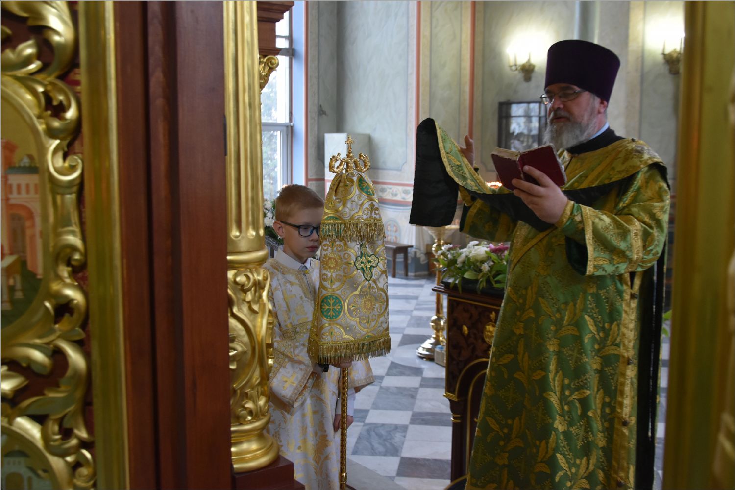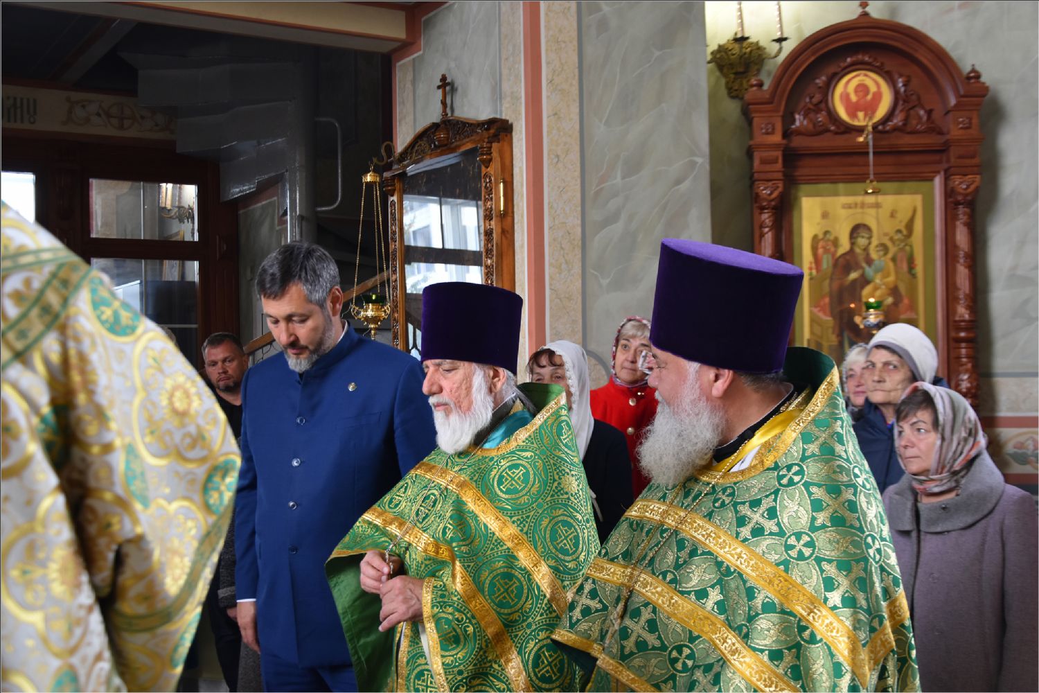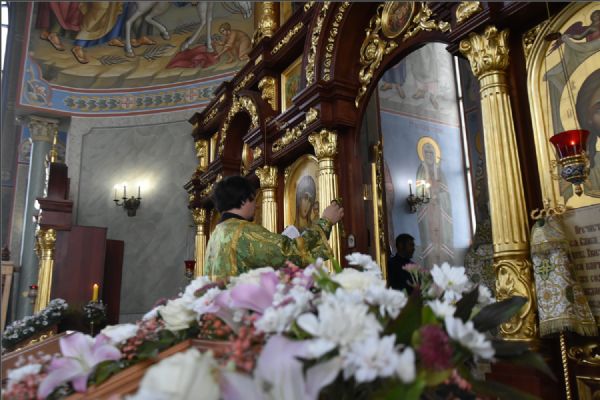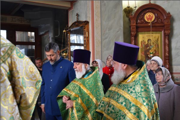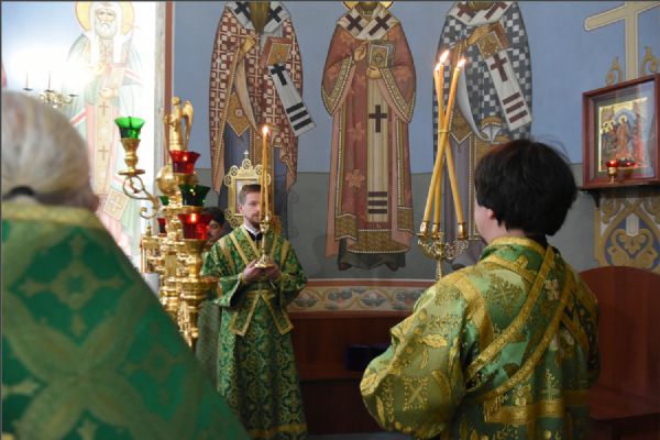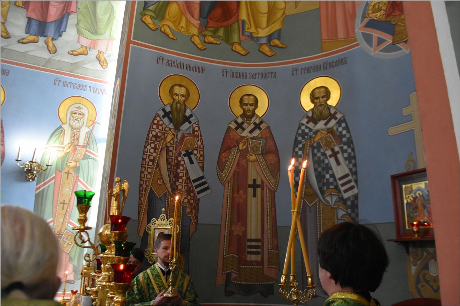 На мирной и сугубой ектениях были вознесены молитвы о Российском воинстве и о мире. Проповедь по запричастном стихе произнёс протоиерей Сергий Козлов.