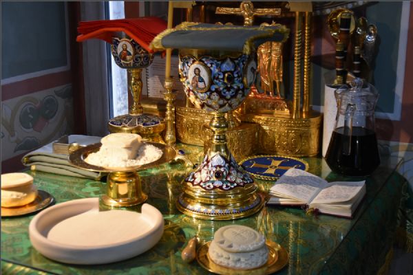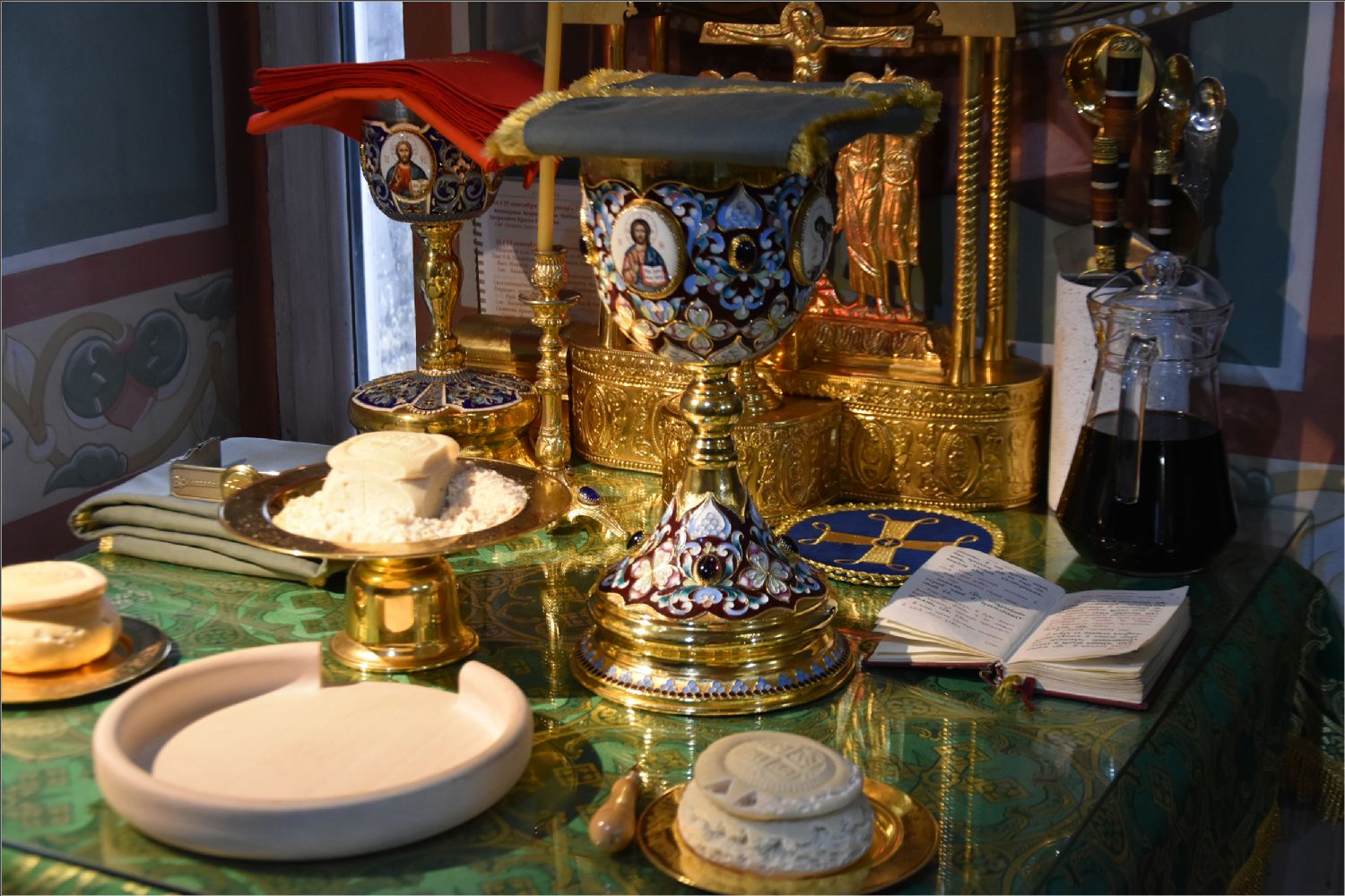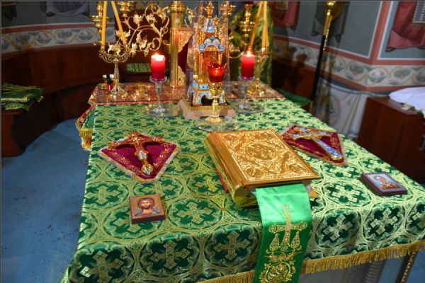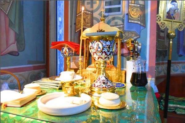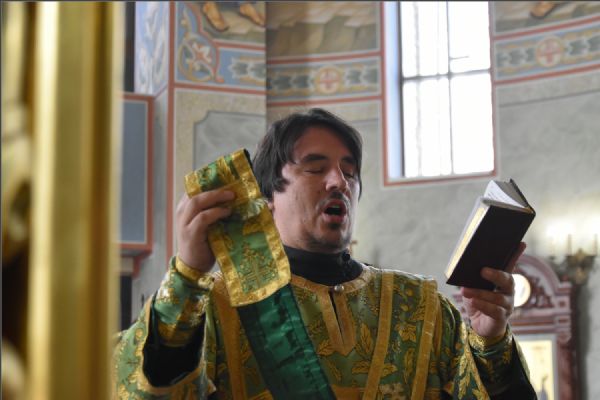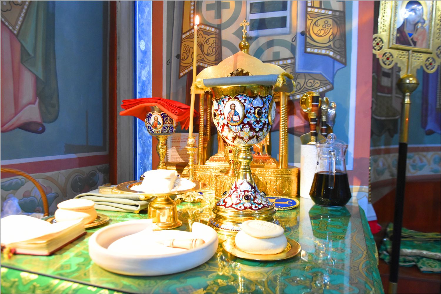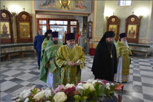 На мирной и сугубой ектениях были вознесены молитвы о Российском воинстве и о мире. Проповедь по запричастном стихе произнёс протоиерей Сергий Козлов.