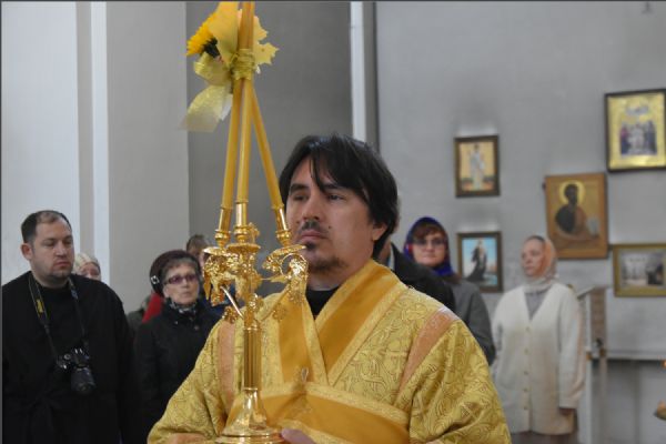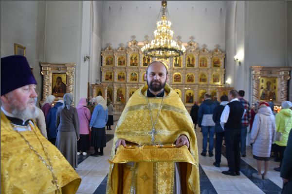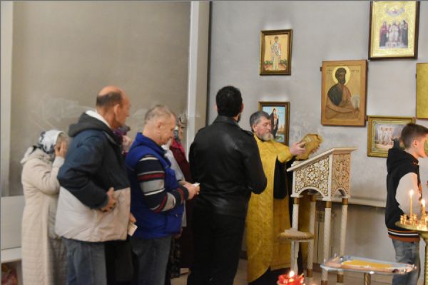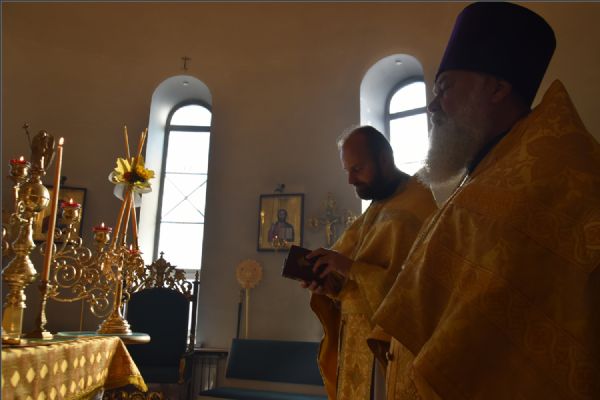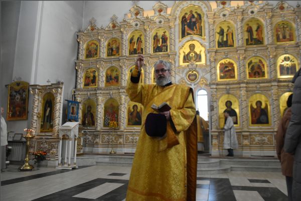 На Литургии на мирной и сугубой ектениях были вознесены молитвы о Российском воинстве и о мире. По запричастном стихе проповедь произнёс иерей Иоанн Можаев.