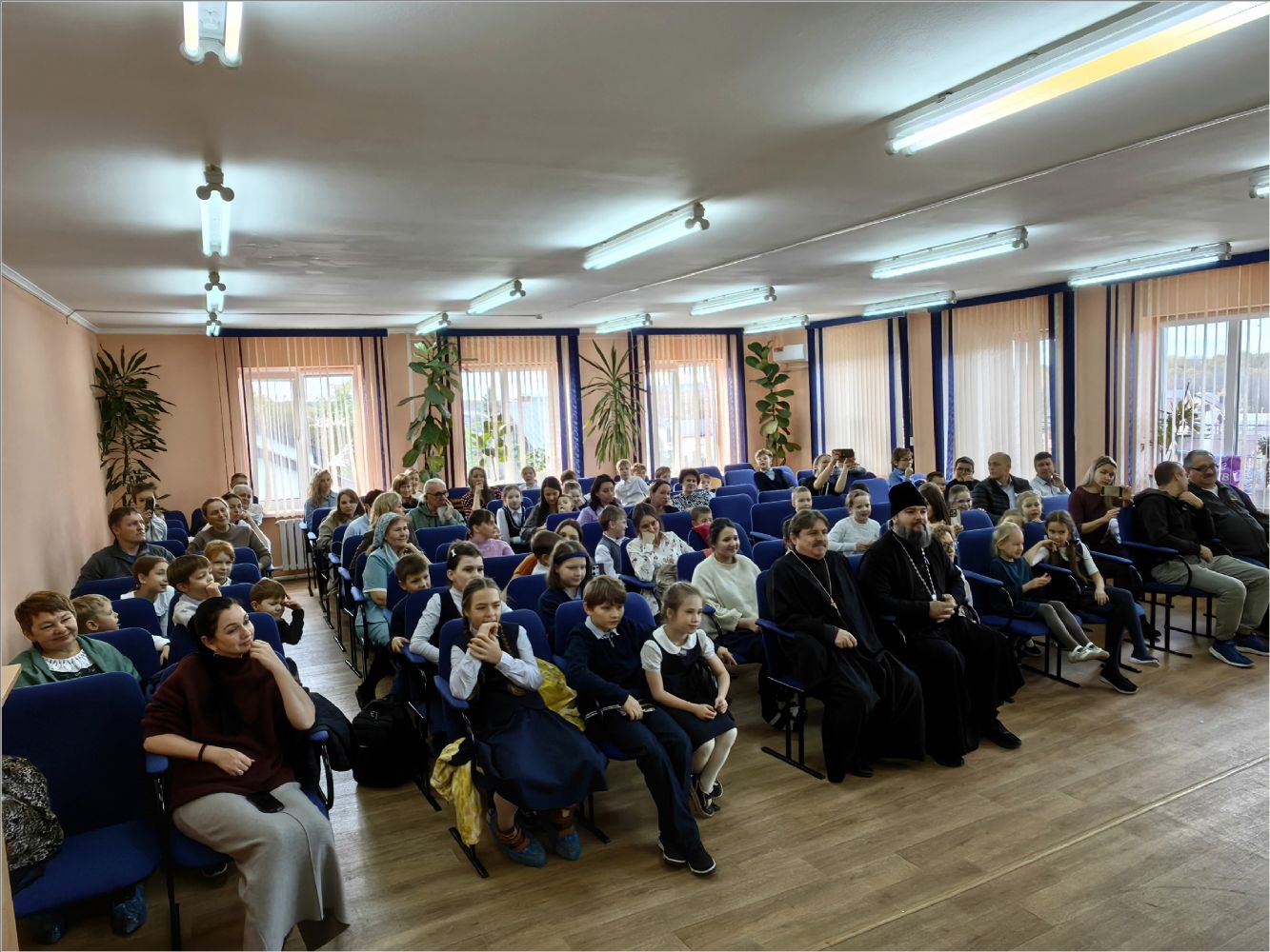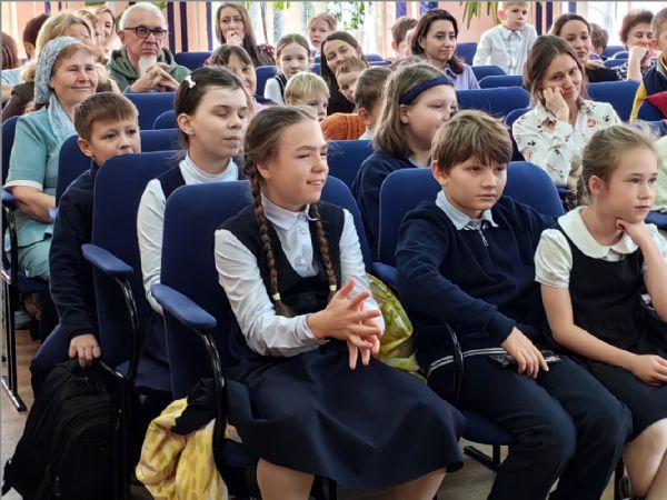 Ученики православной гимназии имени святого великомученика Георгия Победоносца и их родители подготовили праздничное мероприятие, посвящённое Дню учителя. Оно прошло в актовом зале Свято-Вознесенского кафедрального собора города Набережные Челны.