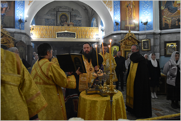 8 октября, накануне дня преставления апостола и евангелиста Иоанна Богослова (начало II века) и дня прославления святителя Тихона, Патриарха Московского и всея Руси (1989), епископ Набережночелнинский и Елабужский Гавриил совершил Всенощное бдение в Свято-Вознесенском кафедральном соборе города Набережные Челны.