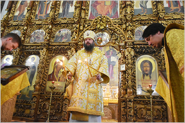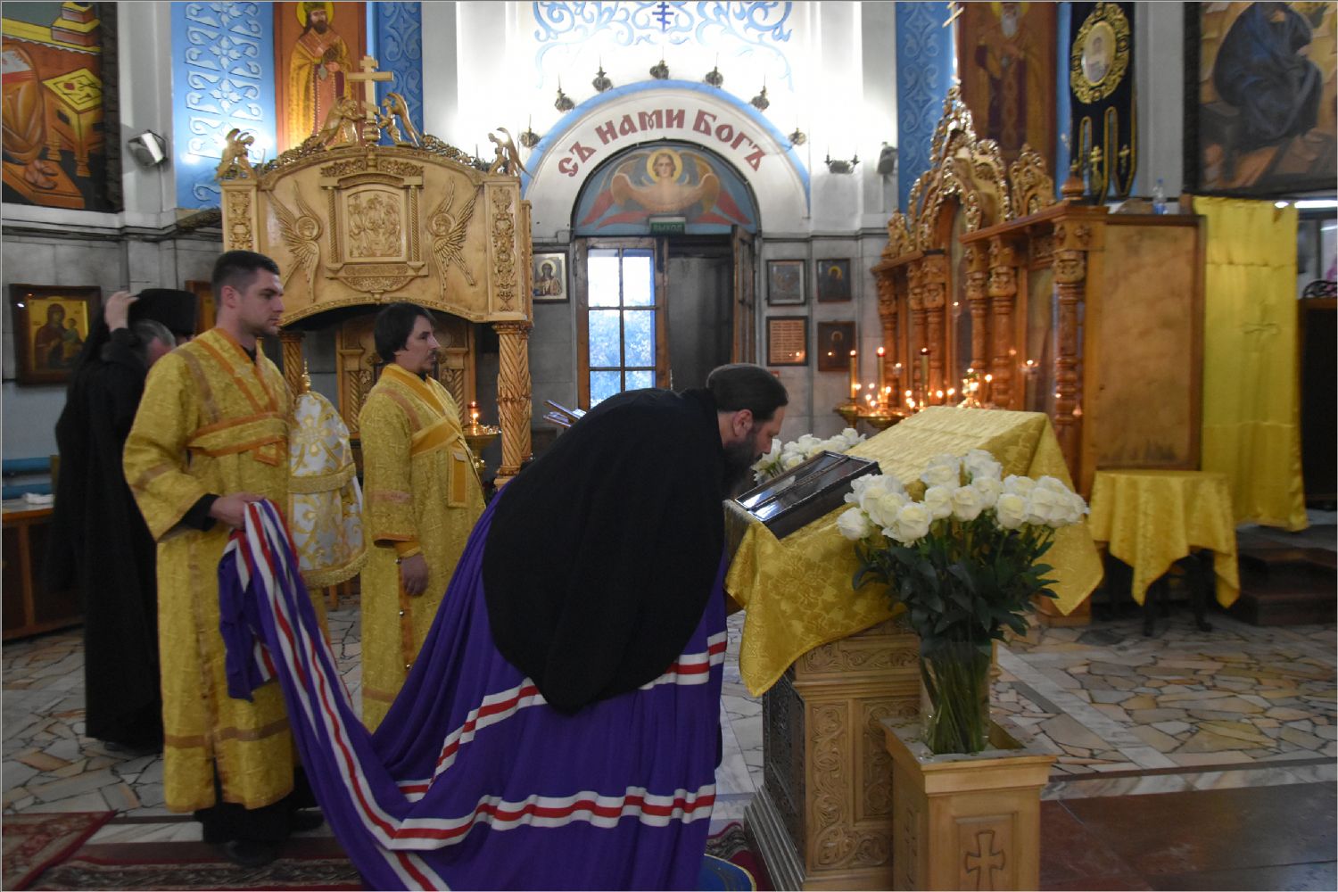 По завершении Литургии было совершено славление апостолу и евангелисту Иоанну Богослову и святителю Тихону, Патриарху Московскому и всея Руси. Архиерей окропил святой водой всех пришедших помолиться в этот день в храм.