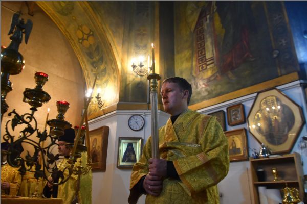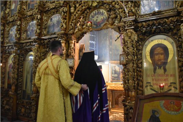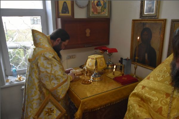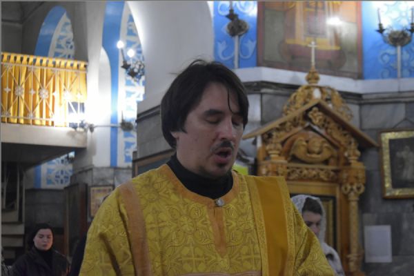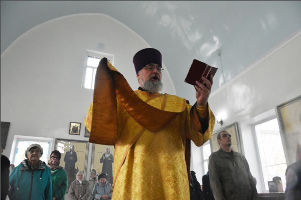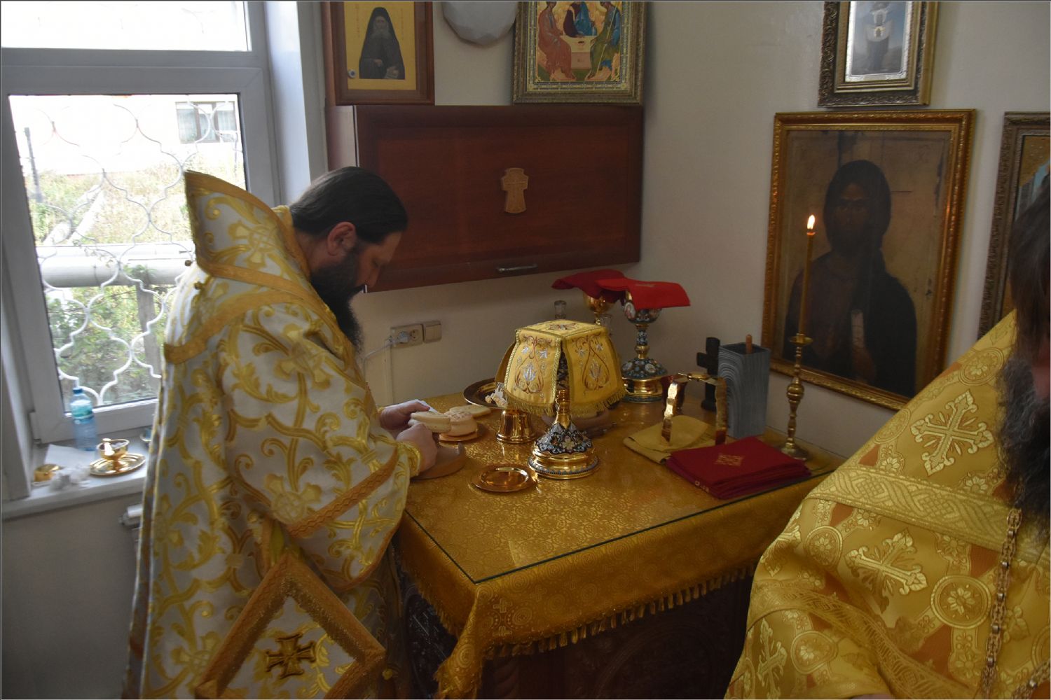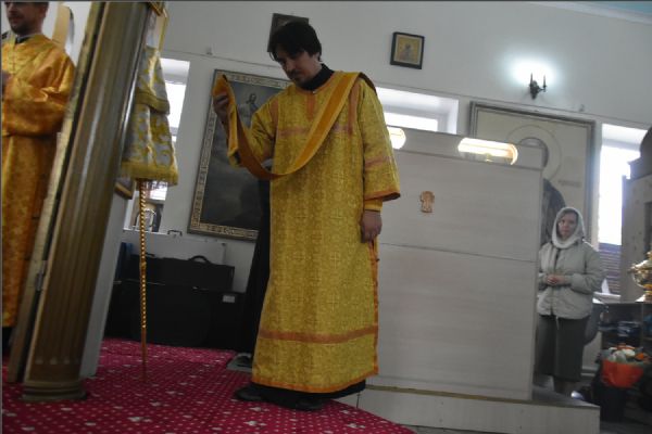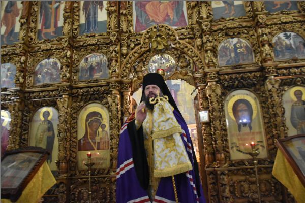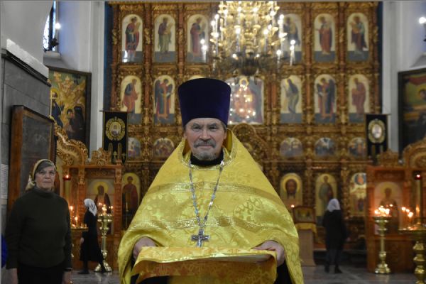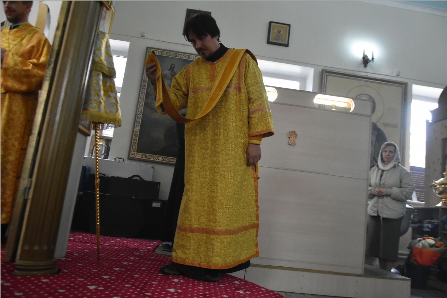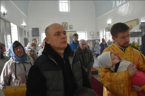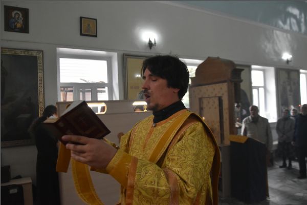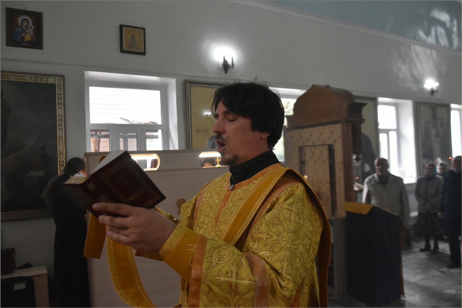 На мирной и сугубой ектениях были вознесены молитвы о Российском воинстве и о мире. По запричастном стихе проповедь произнёс протоиерей Андрей Дубровин. Священник рассказал о жизни и трудах святителя Тихона.