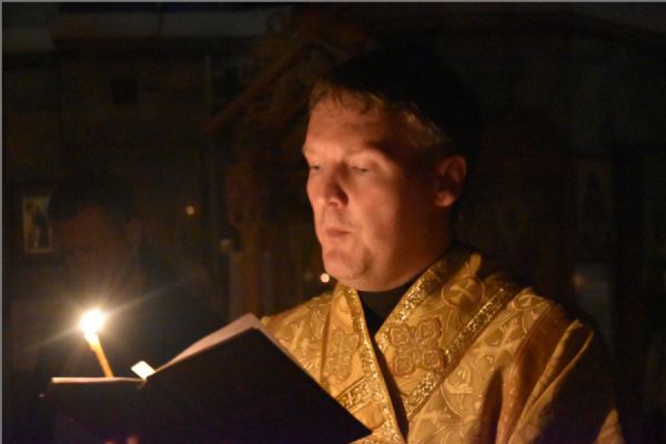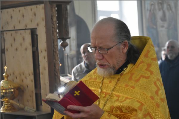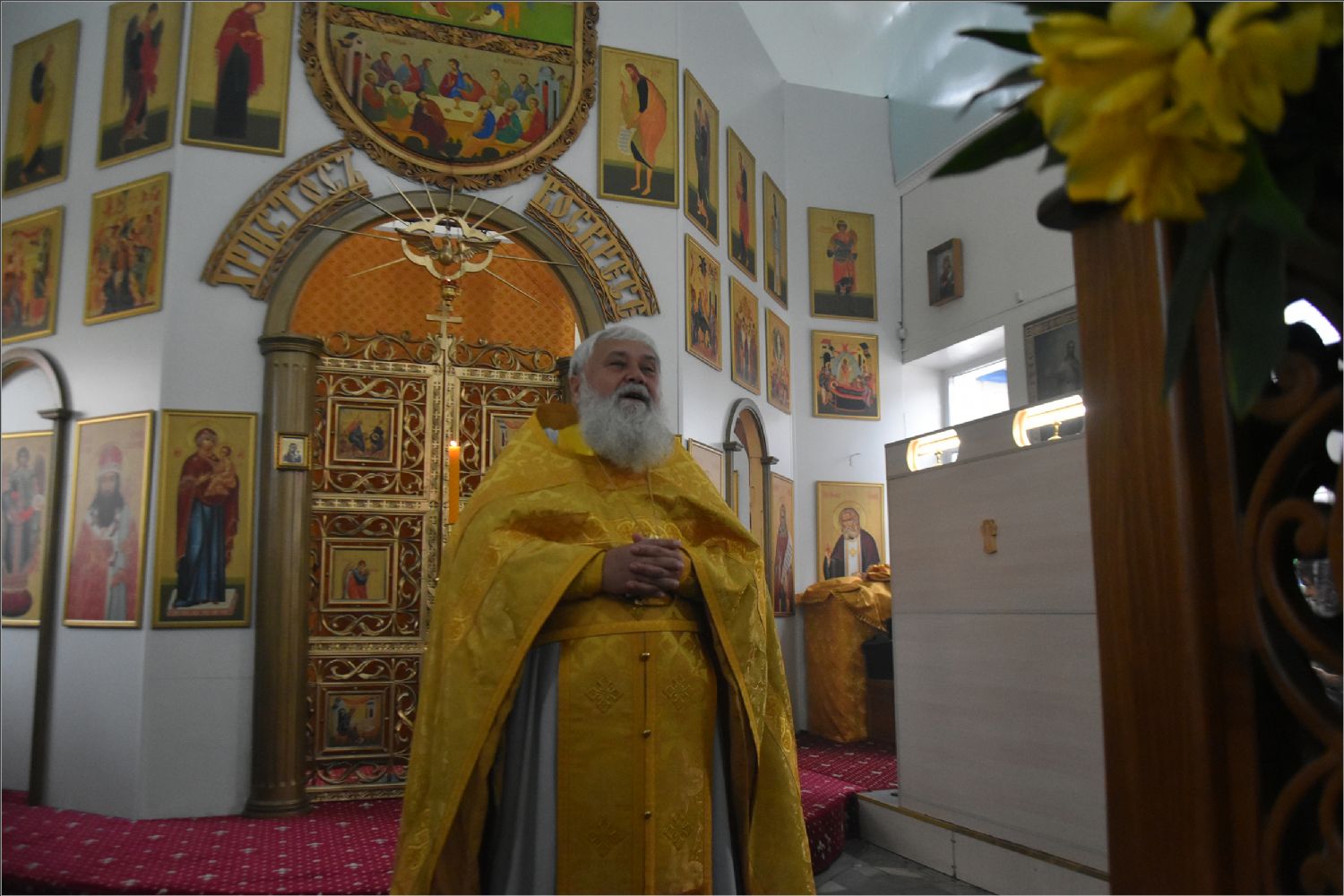 Настоятель храма иерей Дионисий Васильев обратился к архиерею с ответным словом: