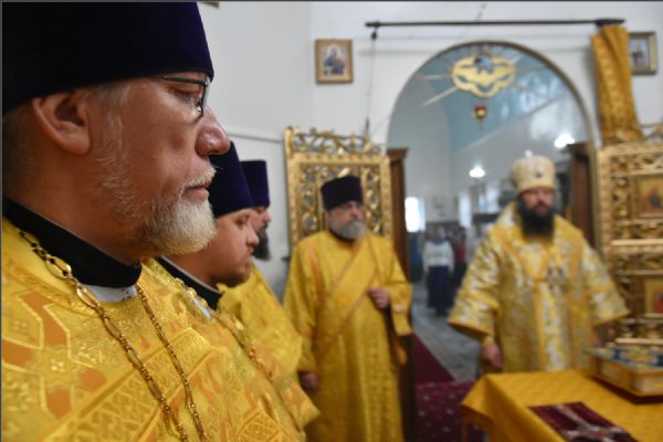 Его Преосвященству сослужили благочинный Закамского округа, настоятель Свято-Вознесенского собора, протоиерей Андрей Дубровин и клирики собора иеромонах Иннокентий (Ручкин) и иерей Георгий Опарин. Диаконский чин возглавил протодиакон Дмитрий Половников.