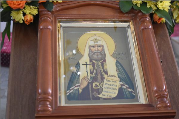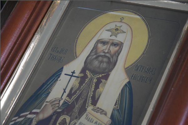 Святый апостоле Иоанн Богослов и святителе Тихоне, молите Бога о нас, ходатайствуйте за всю Родину нашу, святую и великую».