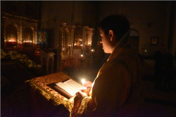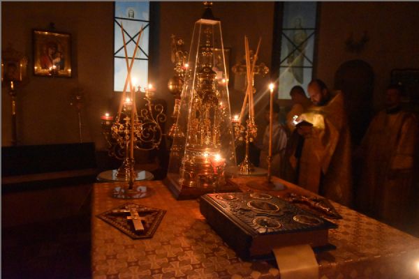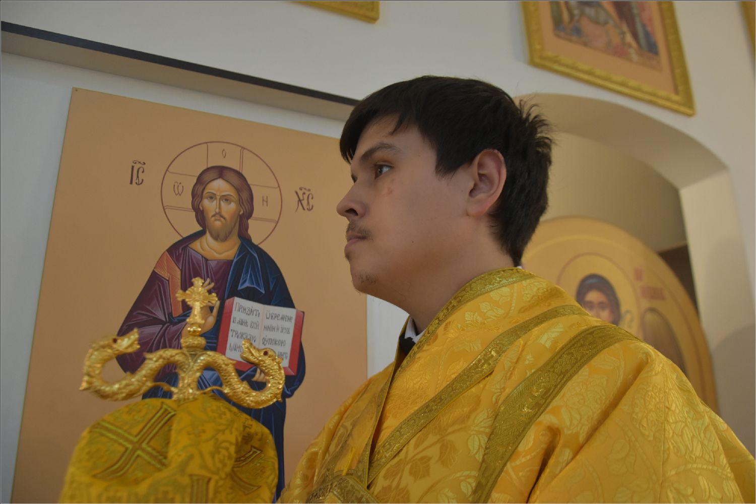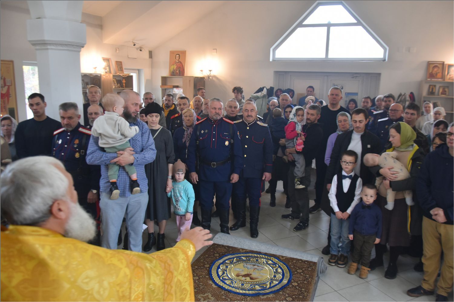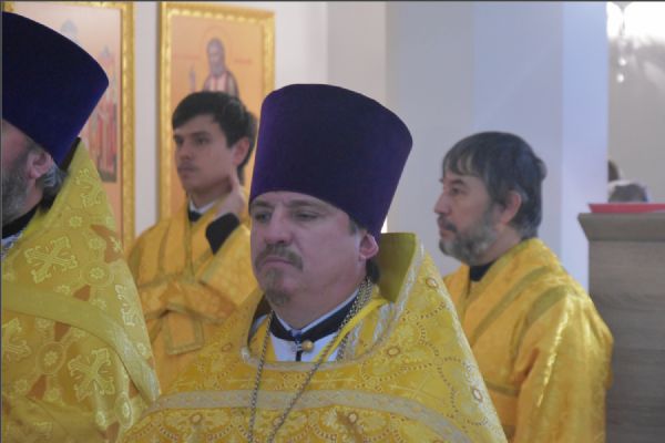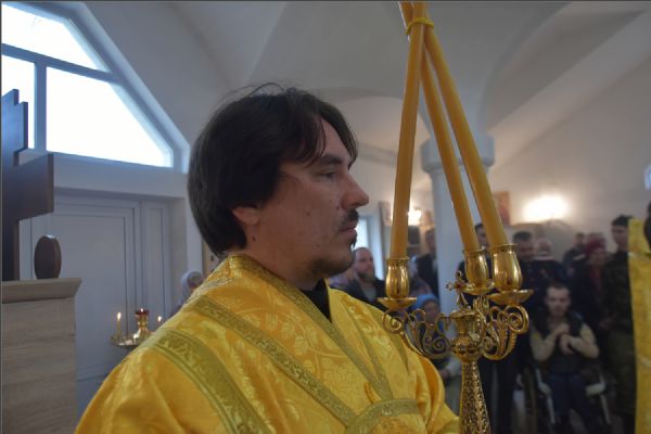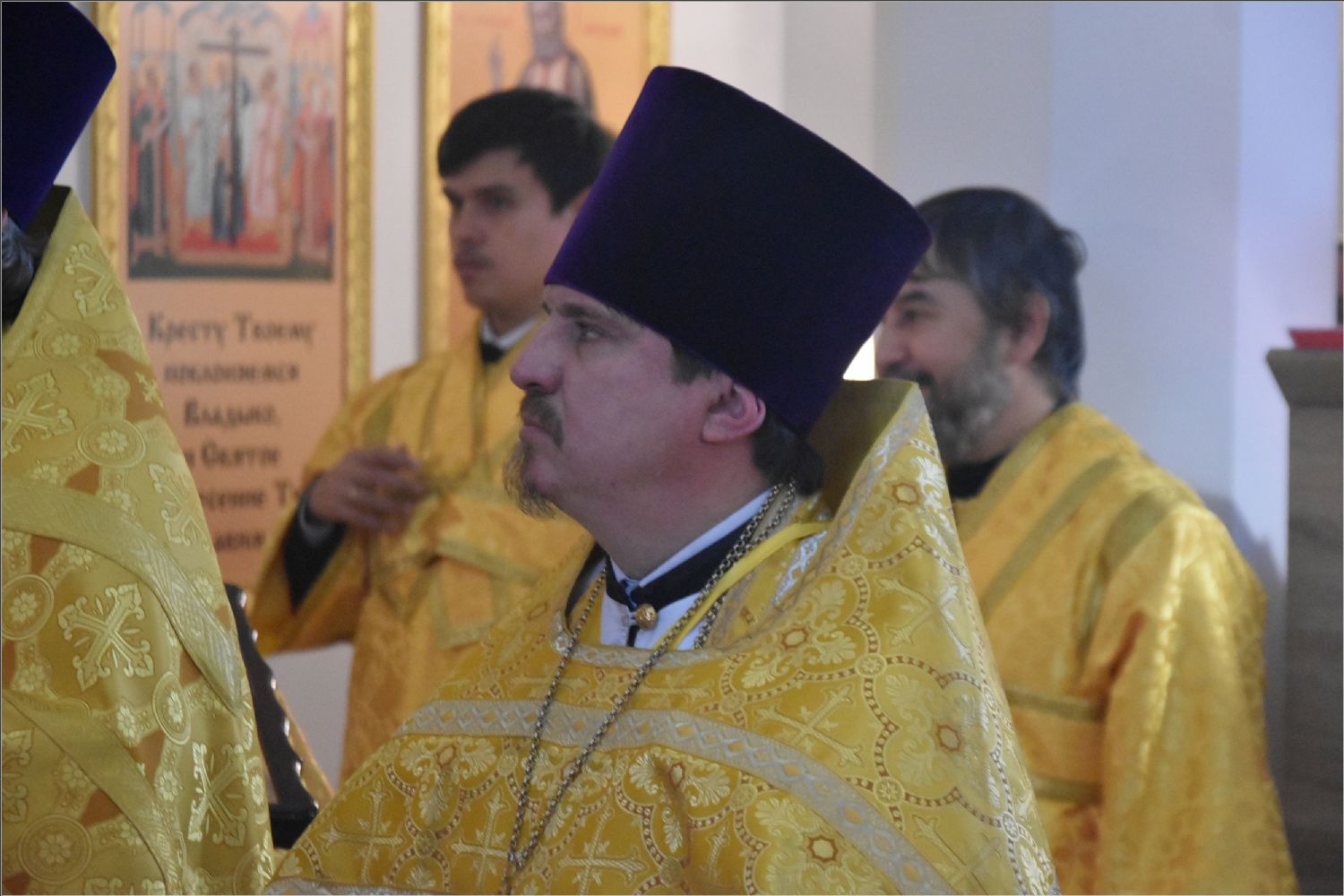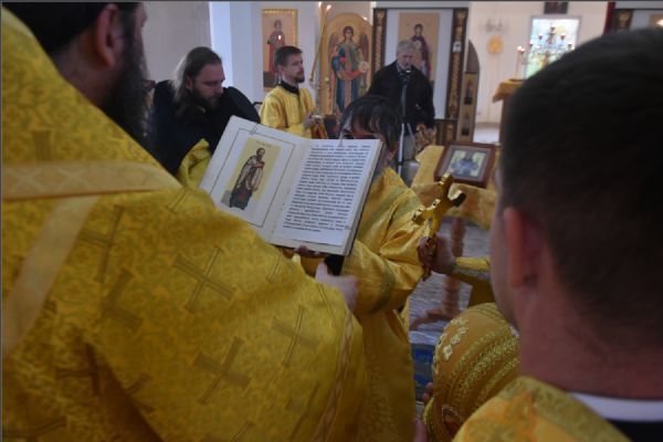 На мирной и сугубой ектениях были вознесены молитвы о Российском воинстве и о мире. По запричастном стихе проповедь произнёс протоиерей Андрей Дубровин.