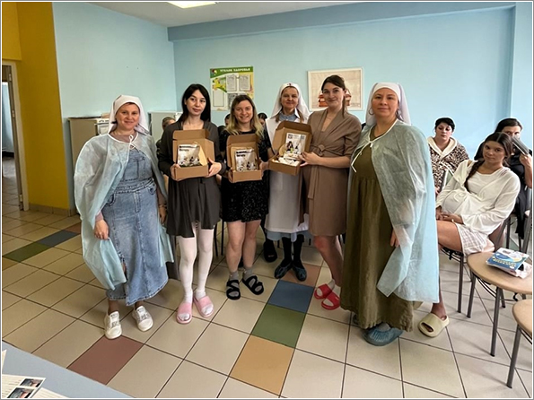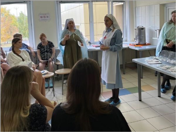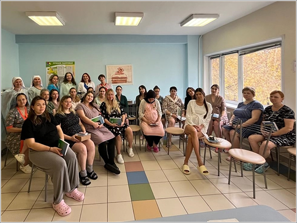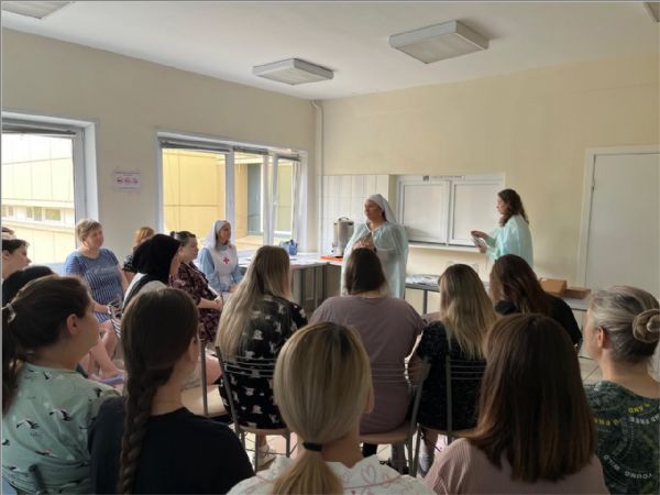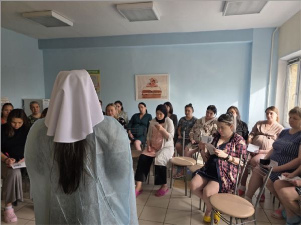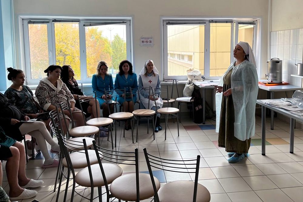 Сестры Свято-Елисаветинского сестричества при храме святых бессребреников Космы и Дамиана поздравили беременных женщин и рассказали о служении сестер милосердия. Сестра Иоанна провела беседу на тему «Мама — лучшее имя женщины» и поделилась с роженицами своими знаниями о взаимодействии мамы и малыша, о важности грудного вскармливания и послеродового периода.