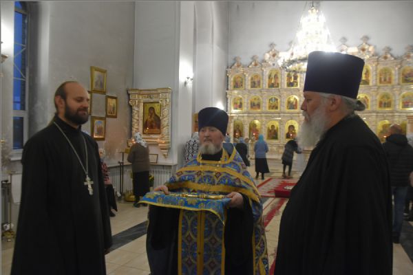 13 октября, епископ Набережночелнинский и Елабужский Гавриил возглавил служение Всенощного бдения в канун праздника Покрова Пресвятой Богородицы в храме Казанской иконы Божией Матери города Набережные Челны.