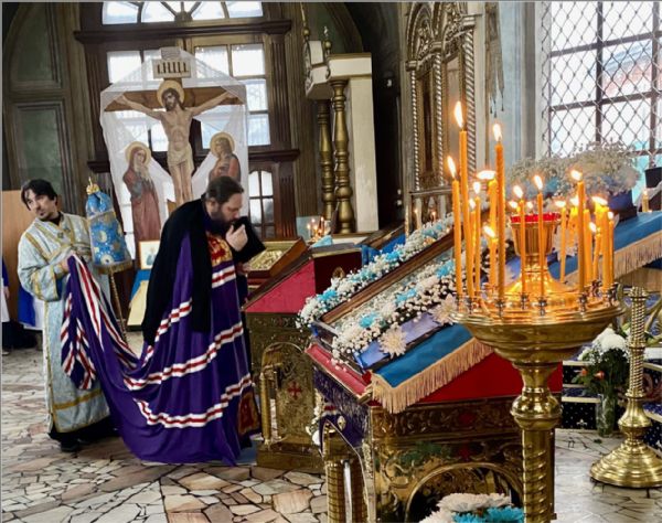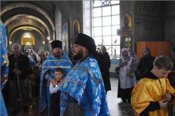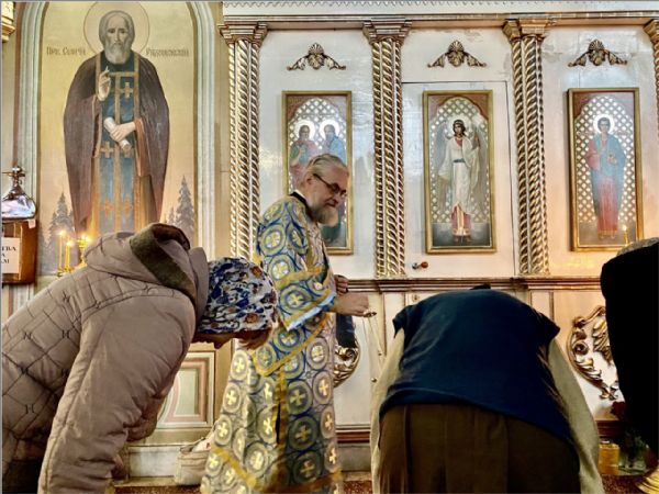 На мирной и сугубой ектениях были вознесены молитвы о Российском воинстве и о мире. По запричастном стихе проповедь произнёс иеромонах Феодор (Деревнин).