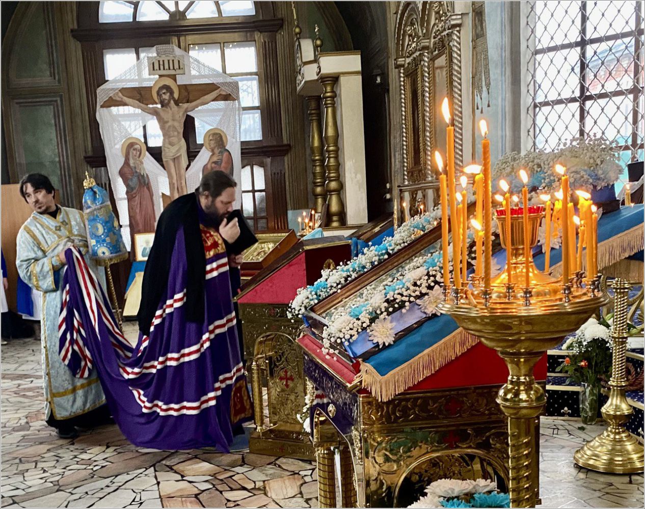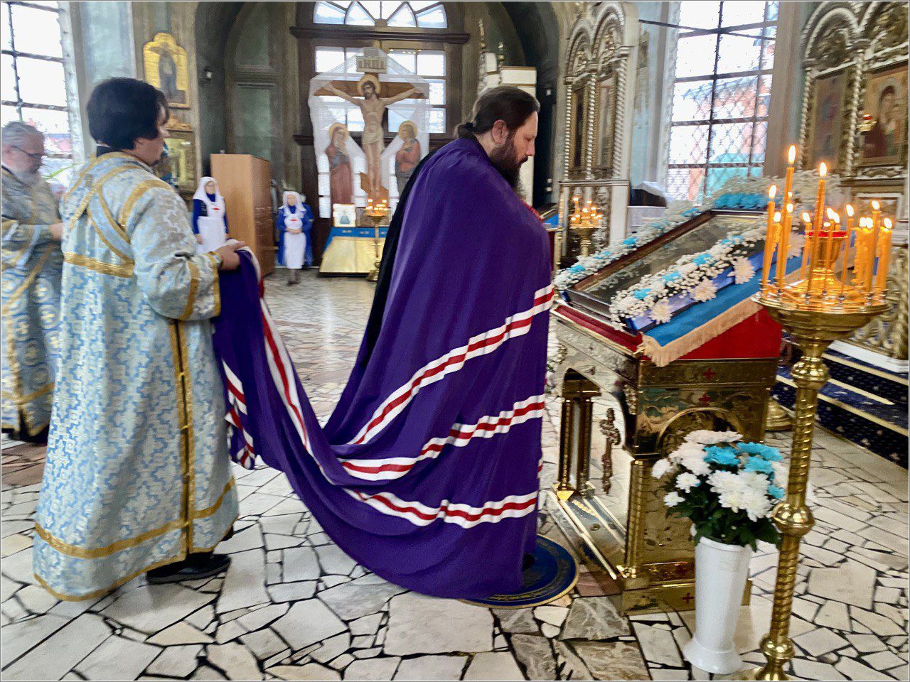Диаконский чин возглавил протодиакон Дмитрий Половников. Богослужебные песнопения исполнил приходской хор под управлением Валентины Лепихиной.