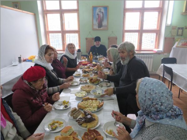 Помощник благочинного Закамского округа по социальной работе и благотворительности Елена Кораблева обратилась к присутствующим: «Как Господь сказал: «Много званных, да мало избранных» (Мф. 22,14). Вы, собравшиеся за праздничным столом, имеете активную жизненную позицию: помогаете фронту, госпиталю и нашим горожанам во всех нуждах. Но, самое главное, вы несете молитвенный подвиг. Например, молитва за наших бойцов неоднократно помогала и помогает сохранить жизни». После чего Елена Анатольевна вручила гостям подарки, предоставленные службой «Милосердие — Казань» и социальным отделом Набережночелнинской епархии.