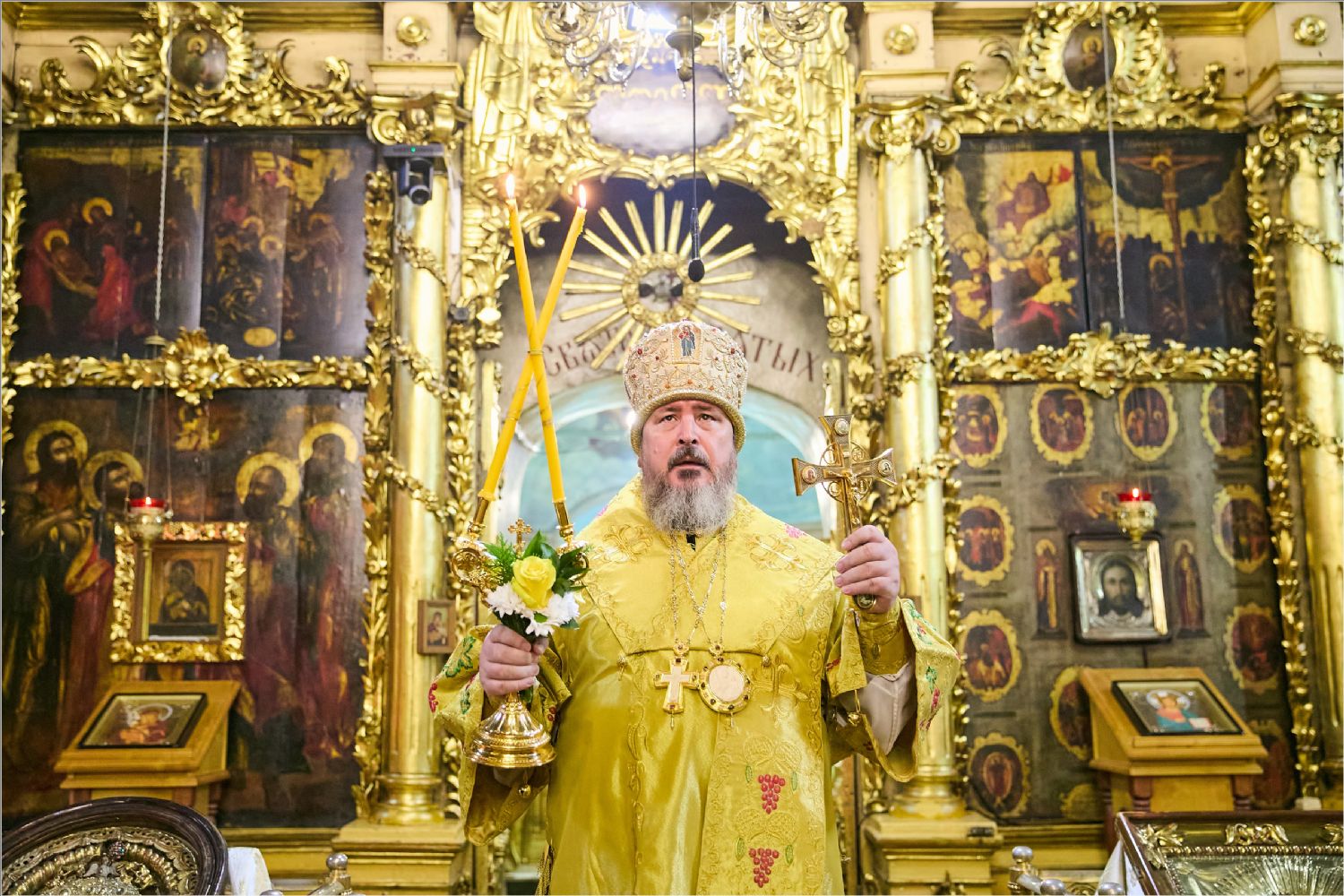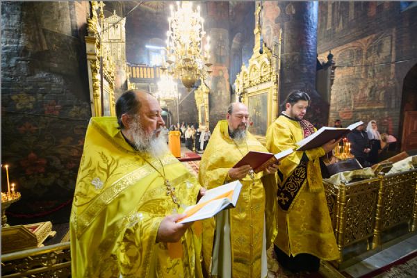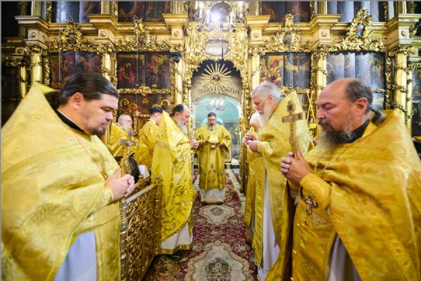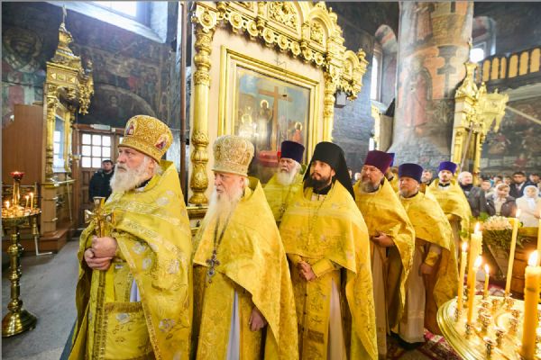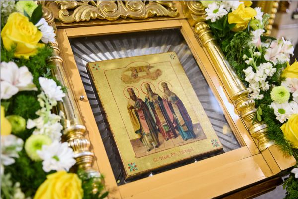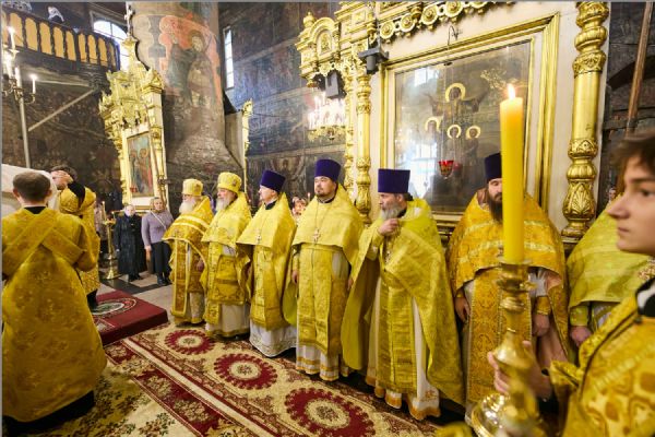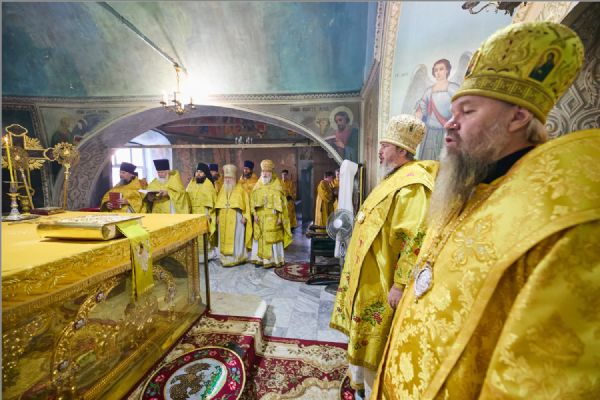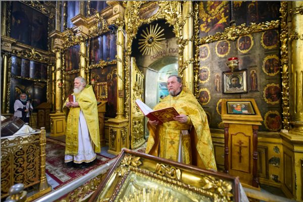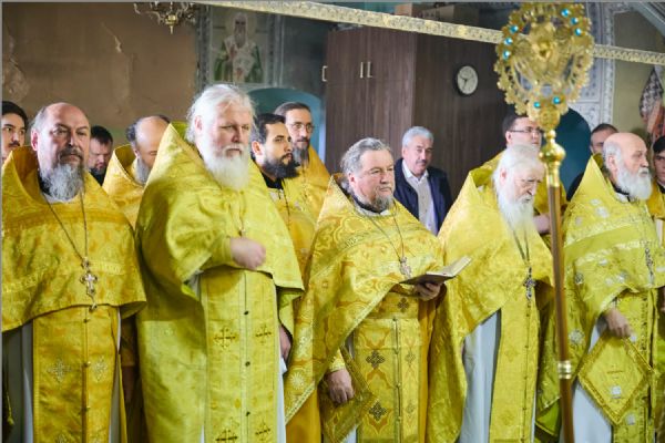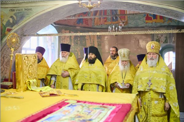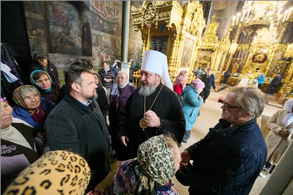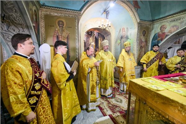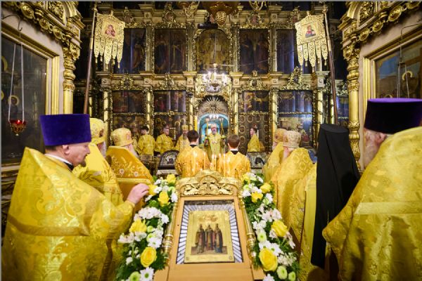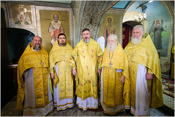 По заамвонной молитве было совершено славление святителям. По отпусте Литургии митрополит Савватий обратился к молящимся с проповедью и преподал каждому благословение.
