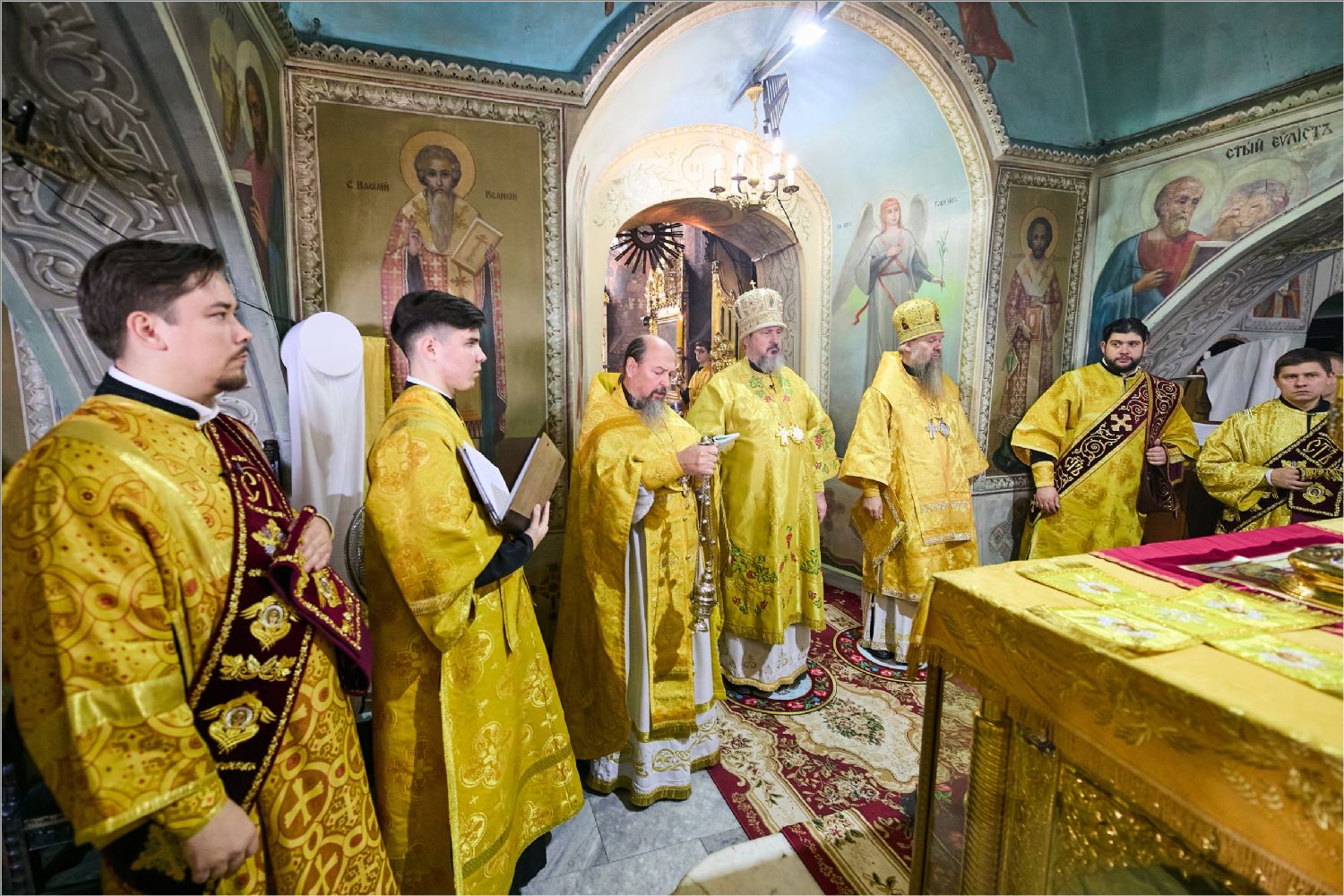 Божественную литургию возглавили глава Чувашской митрополии митрополит Чебоксарский и Чувашский Савватий и епископ Канашский и Беловолжский Стефан. Им сослужили клирики Чебоксарской, Алатырской, Казанской, Канашской, Набережночелнинской и Чистопольской епархий на территории которых проживают носители тюркских языков. Среди сослужаащих был руководитель кряшенской миссии Набережночелнинской епархии протоиерей Владимир Иванов.