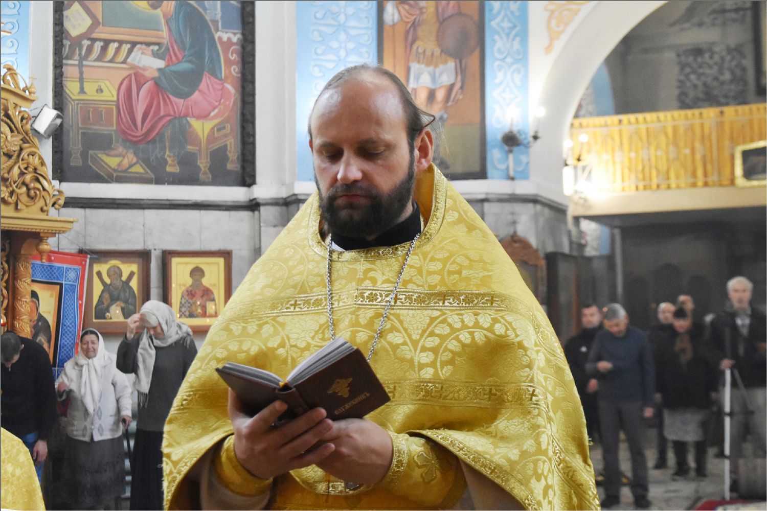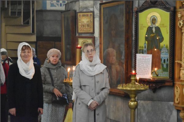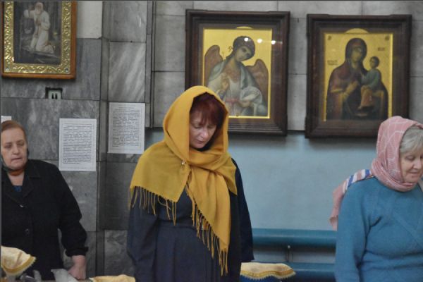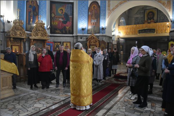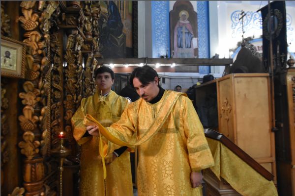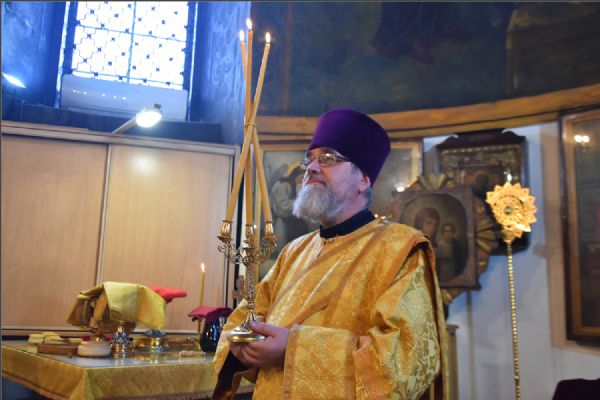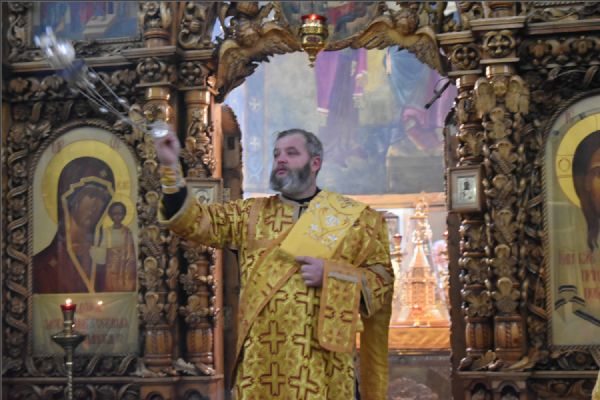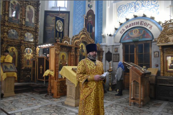 На мирной и сугубой ектениях были вознесены молитвы о Российском воинстве и о мире. По запричастном стихе проповедь произнёс протоиерей Андрей Дубровин.