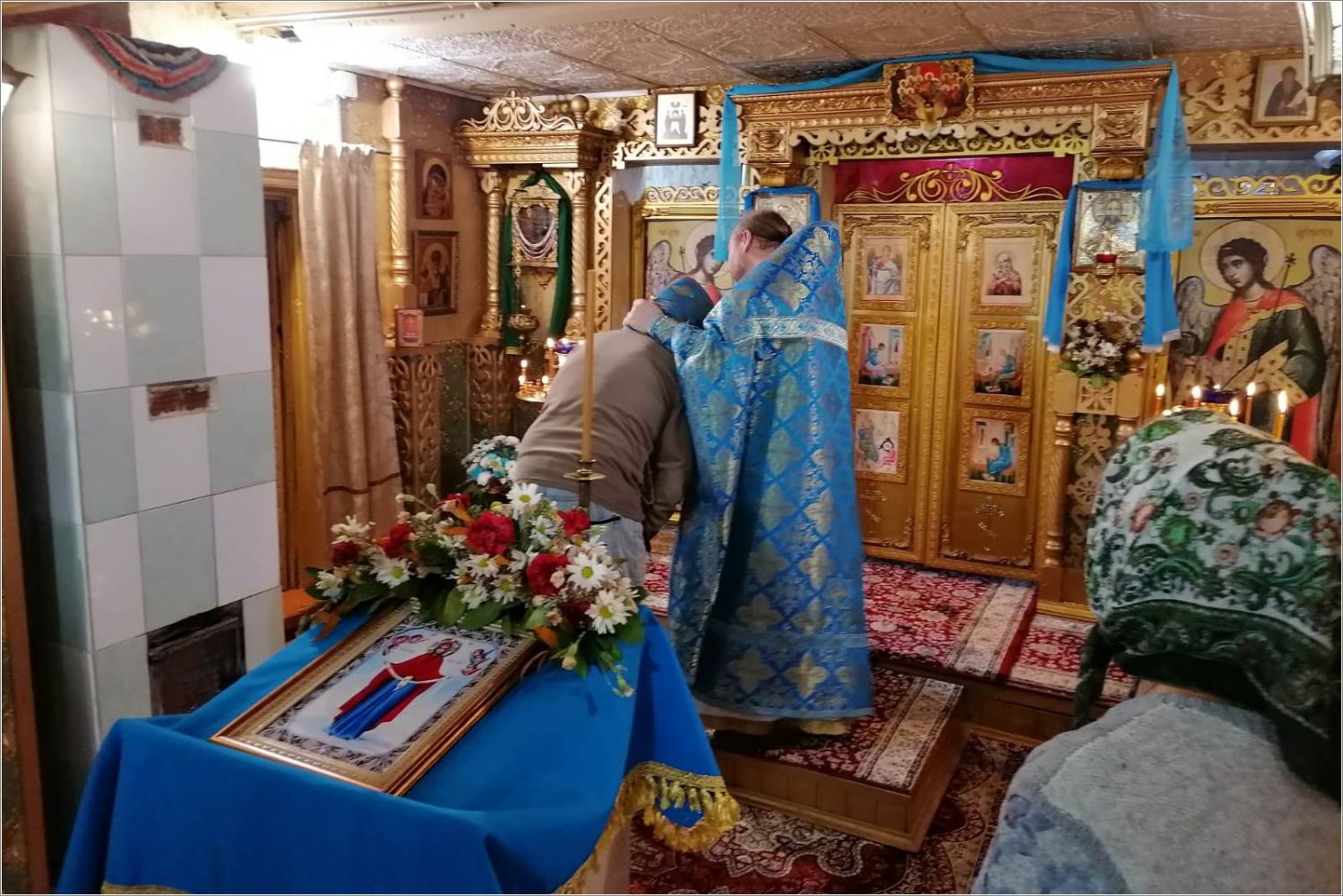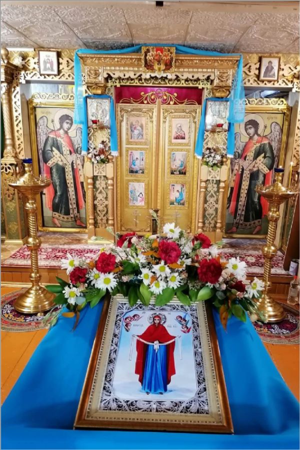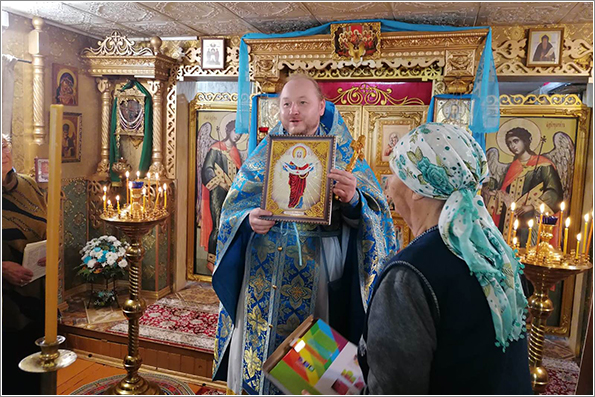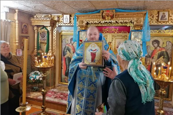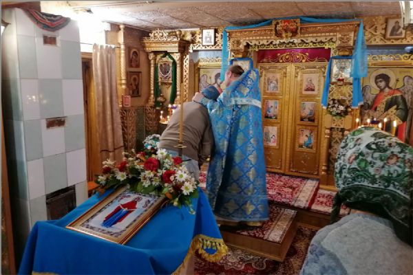 В день праздника отец Кирилл отслужил Литургию, на которой причастились все прихожане и гости. В этой церкви во время Всенощной и Литургии поют все, кто пришел помолиться. После Литургии прошли крестным ходом вокруг церкви. Прихожане церкви подарили своему настоятелю икону Покрова Божией Матери. Отец Кирилл поздравил всех с праздником, поблагодарил за совместную службу, сказал теплые напутственные и назидательные слова, затем всех пригласил на праздничную трапезу.