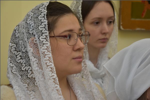 На литургии молились православная молодежь епархии, казаки Боровецкого хутора Волжского казачьего войска и Союза казаков-воинов России и Зарубежья, сестры-милосердия Свято-Серафимовского сестричества, прихожане челнинских и елабужских храмов.