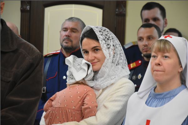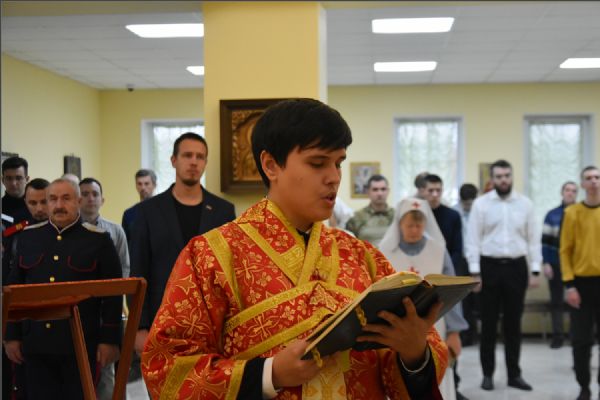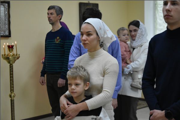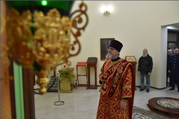 На мирной и сугубой ектениях были вознесены молитвы о Российском воинстве и о мире. Проповедь по запричастном стихе произнес иерей Александр Макариков.