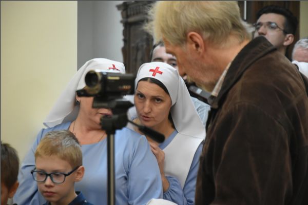 «Сегодня очень хорошо пел хор под руководством Елены Геннадьевны. Самое прекрасное — участие в службе; лучше ничего нет на свете, чем служить в храме! Если Богом человеку дано — учиться в семинарии, быть рукоположенным в священный сан или читать на клиросе, петь — не надо сомневаться, не надо этого счастья себя лишать. Недаром в древних книгах сказано, что во время службы Божья Матерь ходит по храму и раздает всем монетки, символизирующие Божью благодать: кто молится внимательно, может золотую монетку получить, а кто поет на клиросе — тому и пять монеток может дать Богородица. Во время Литургии небо на землю нисходит, ангелы с нами невидимо служат. Святому Сергию Радонежскому во время Литургии являлся Сам Господь. Батюшка Сергий однажды увидел, как над Престолом воссиял огонь и опустился в чашу со Святыми Дарами. Вот насколько удивительна служба, которая в храме совершается. Казалось бы, вы все привыкли к этому храму, в его стенах чувствуете себя как дома. А не задумываемся, что здесь свершается величайшее Таинство, и мы принимаем в нем участие. Поэтому никогда не оставляйте храм Божий, Божественную службу.