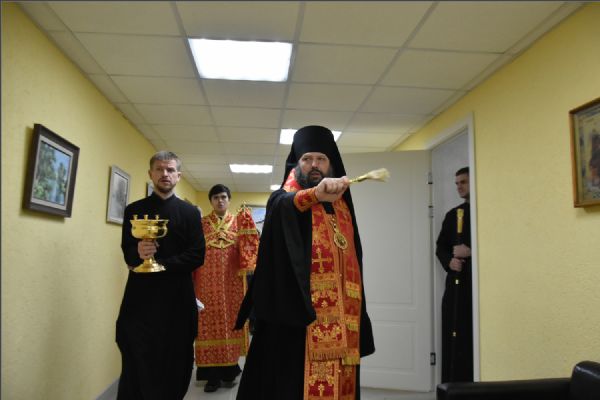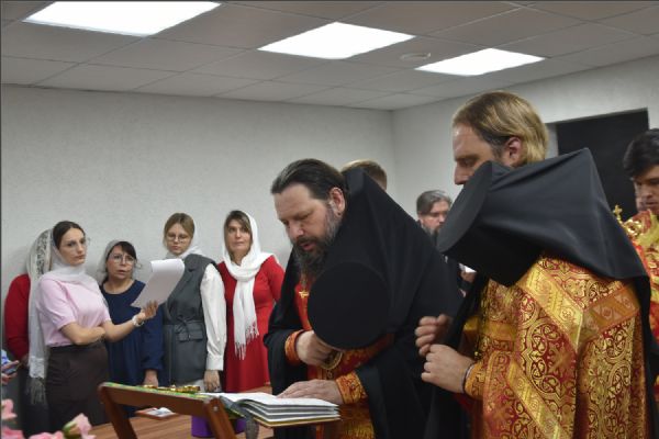Затем епископ Гавриил совершил чин молебного пения на освящение учебного заведения и освятил помещения духовно-просветительского центра в цокольном этаже административного корпуса прихода преподобного Серафима Саровского.