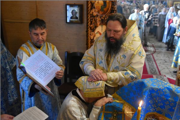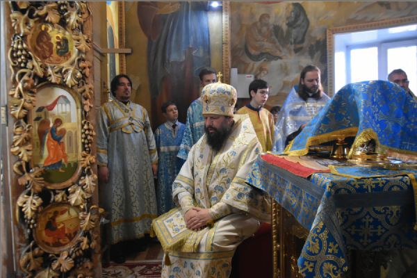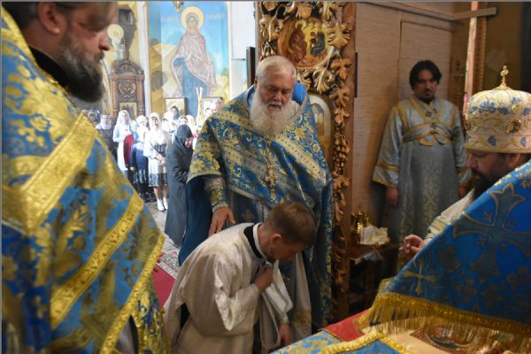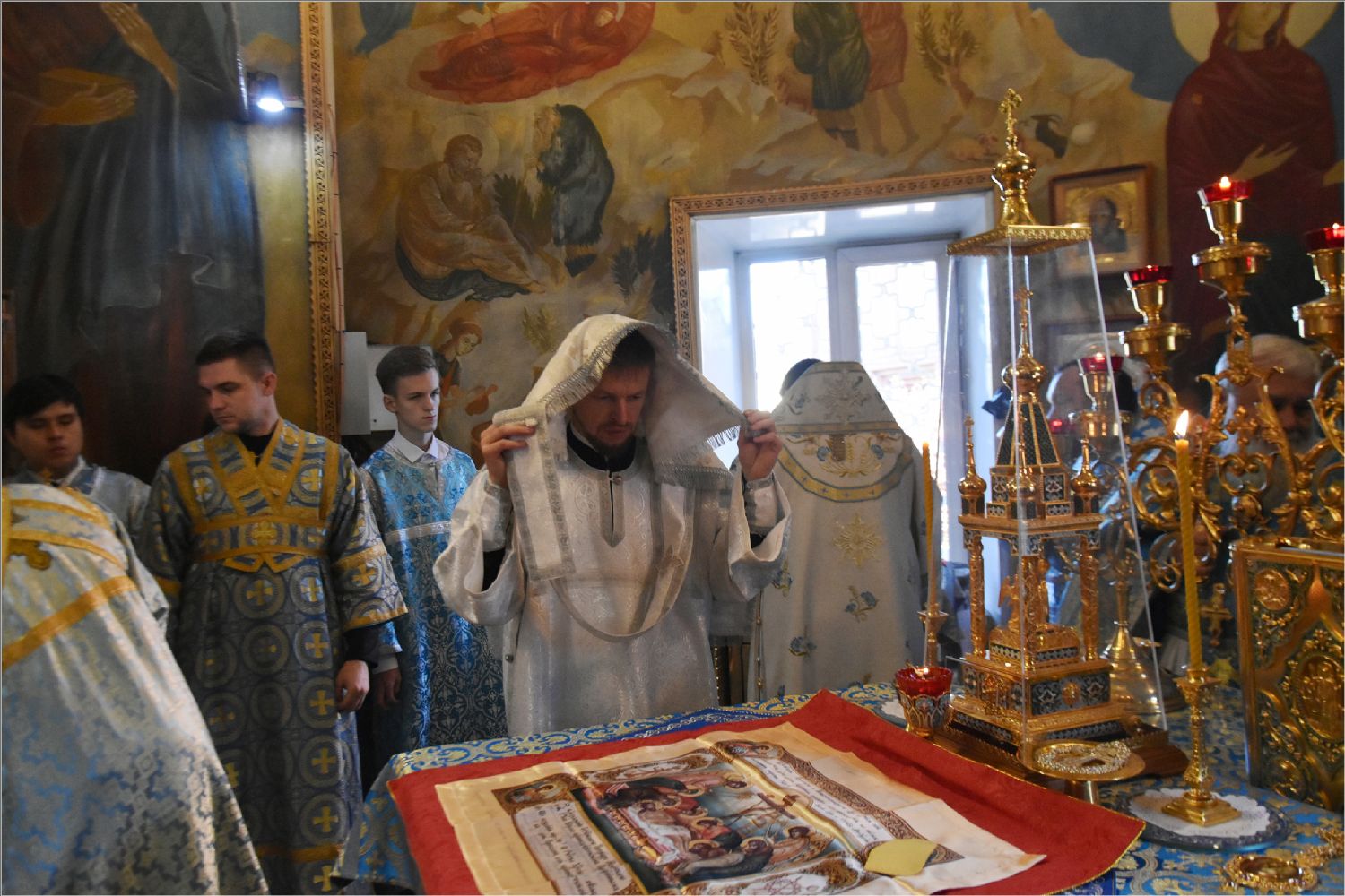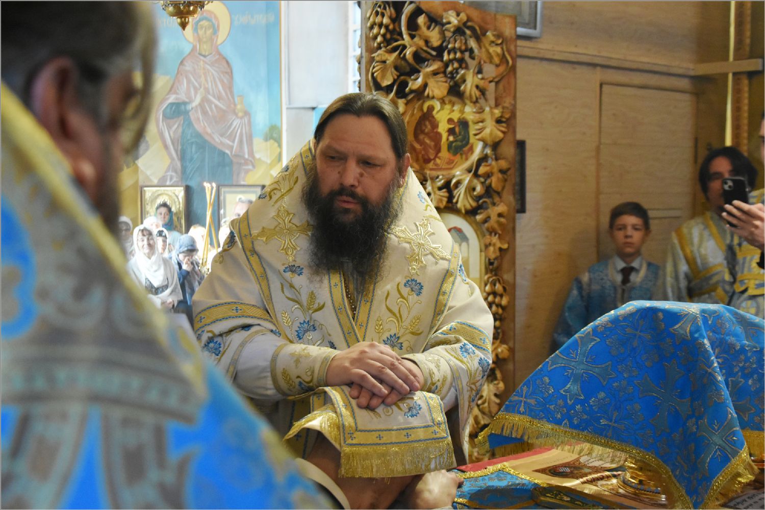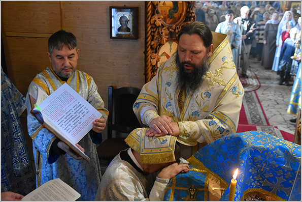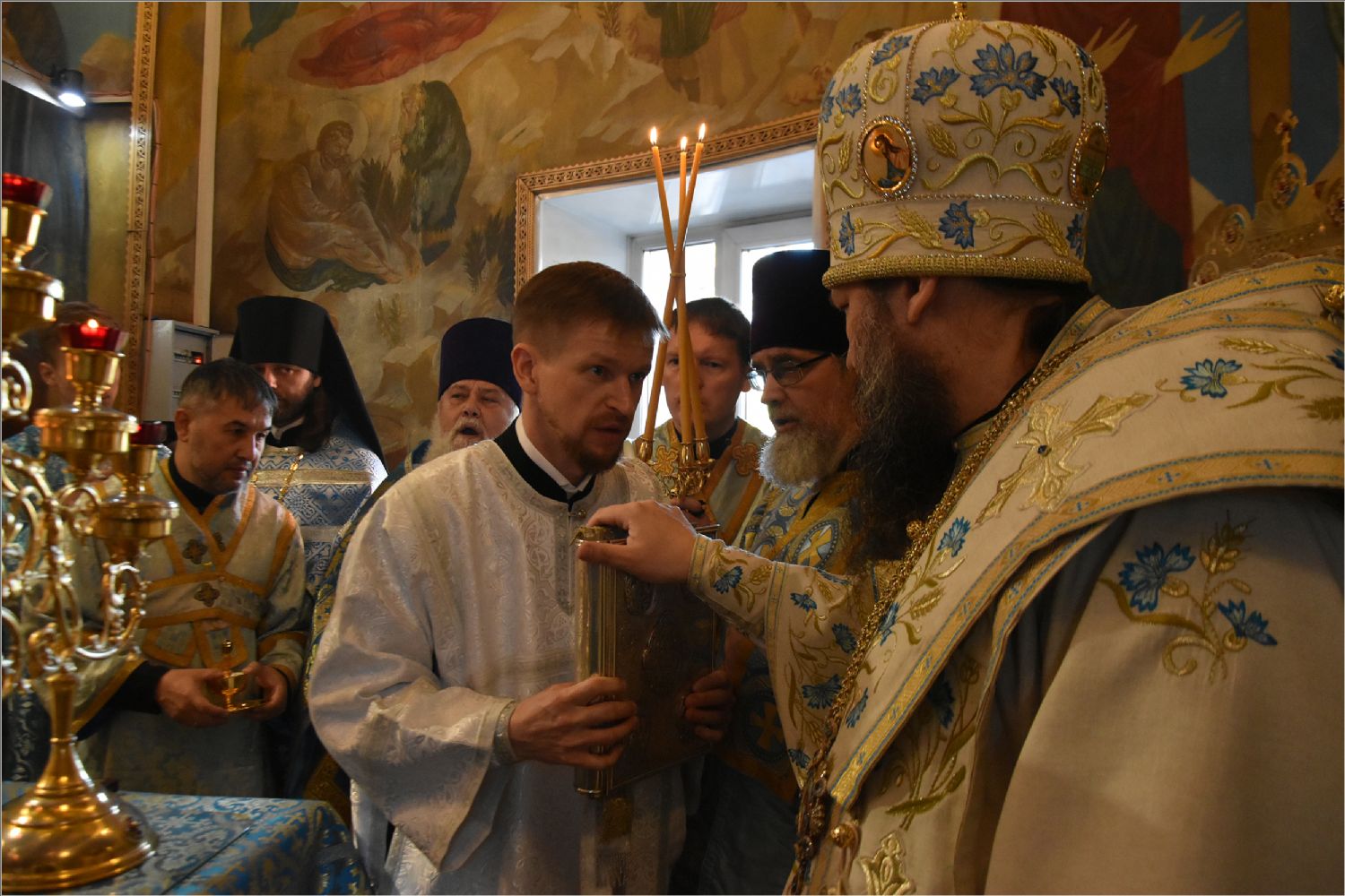 После великого входа Литургии архиерей совершил хиротонию клирика Свято-Вознесенского кафедрального собора города Набережные Челны диакона Сергия Иноземцева во пресвитера.