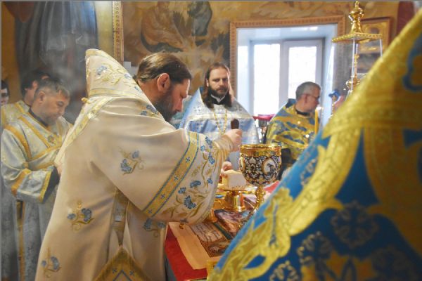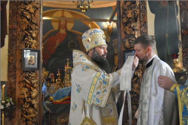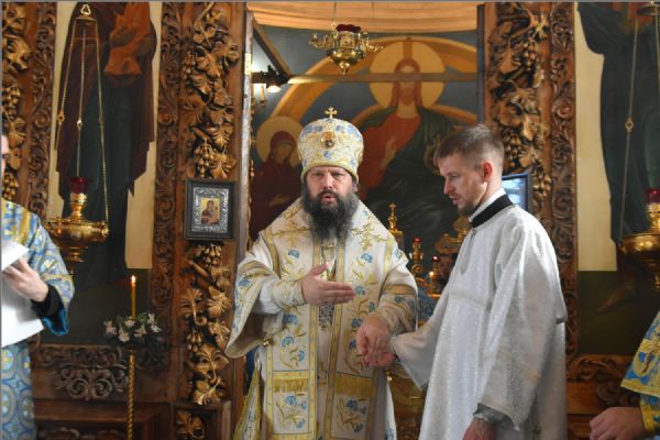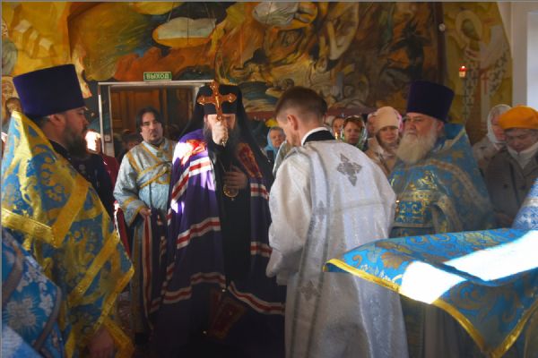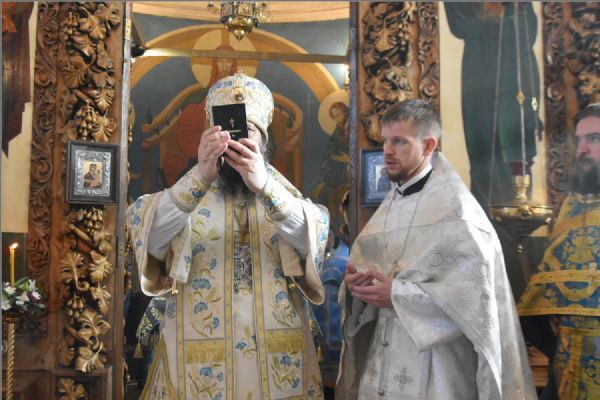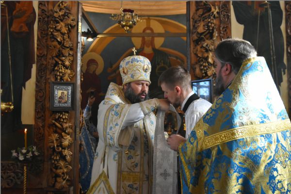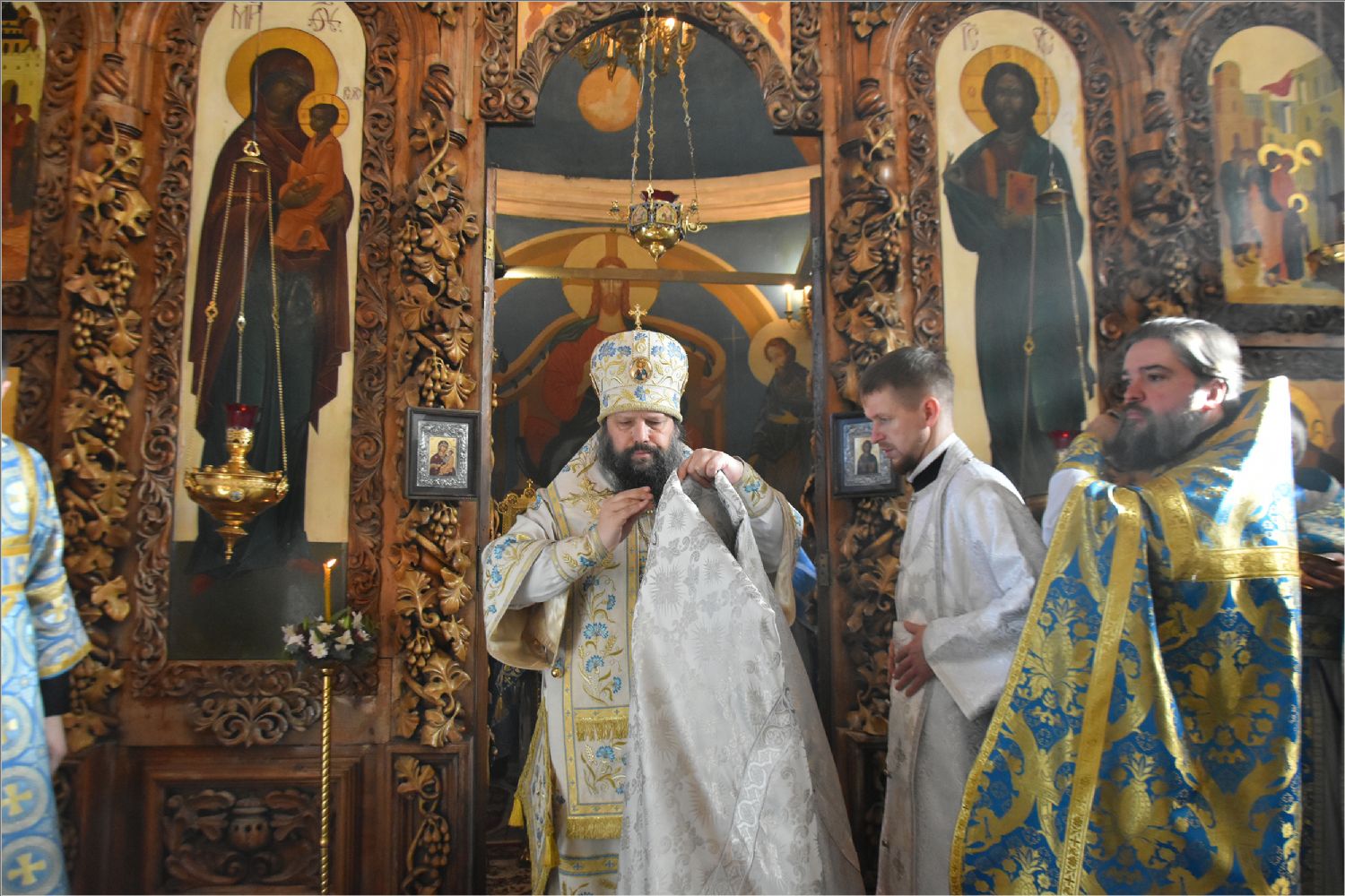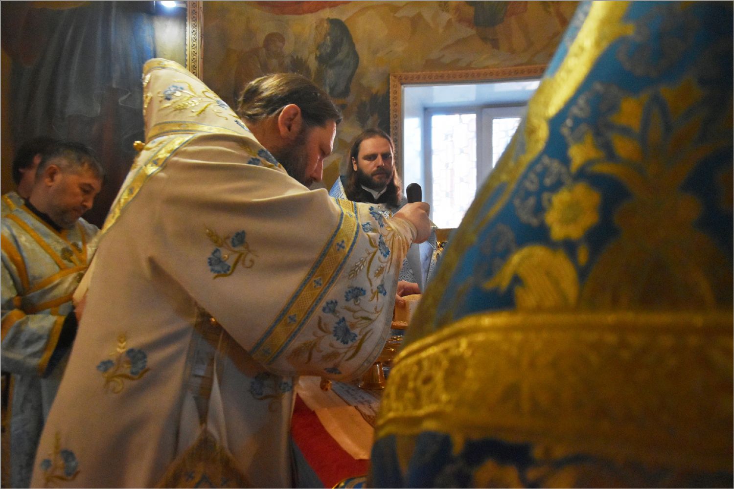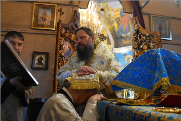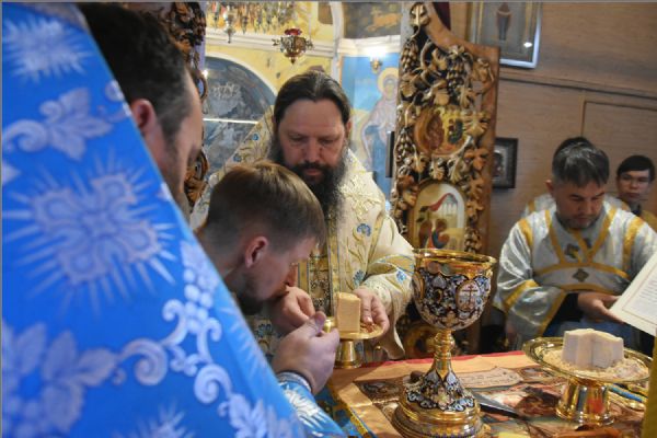 После великого входа Литургии архиерей совершил хиротонию клирика Свято-Вознесенского кафедрального собора города Набережные Челны диакона Сергия Иноземцева во пресвитера.