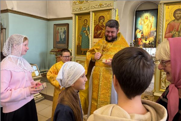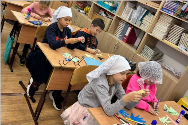 Группа «Буквицы» детской воскресной школы при Свято-Вознесенском кафедральном соборе с помощью педагога Олеси Никитиной в этот день мастерили открытки, чтобы дома в праздничной атмосфере поздравить своих дорогих людей.