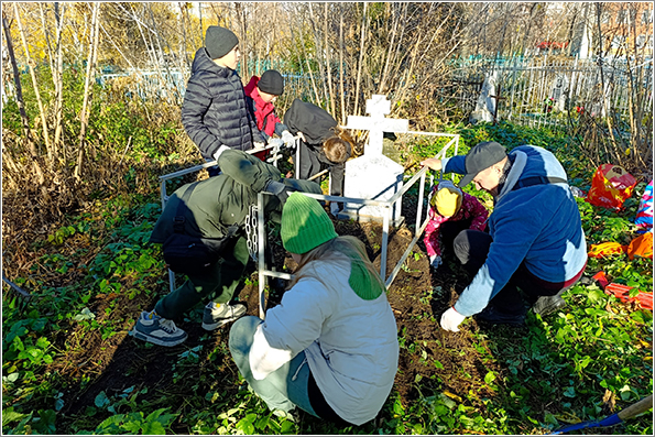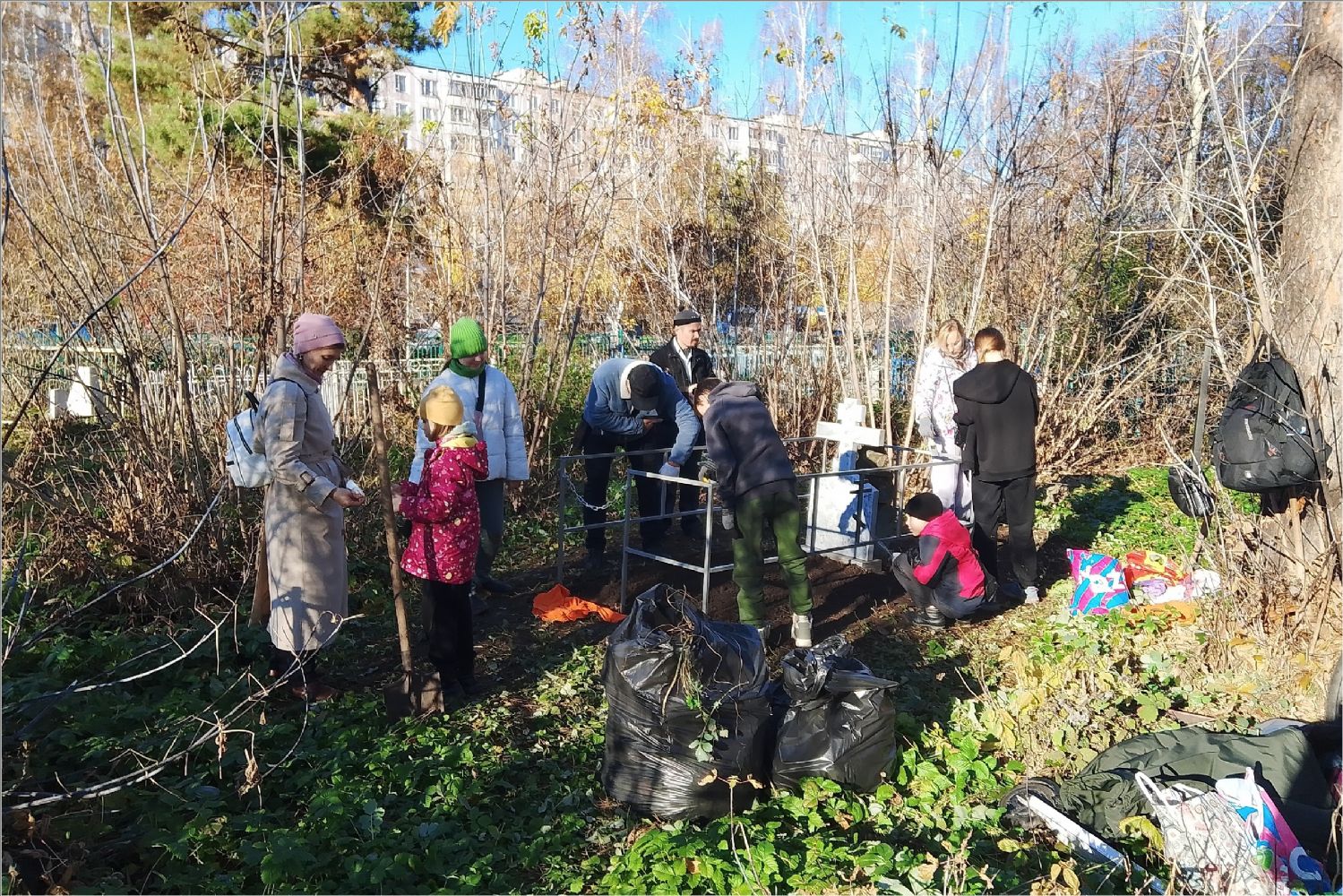 26 октября в преддверии Дмитриевской родительской субботы воспитанники Клуба юных спасателей «Спас» и ученики воскресной школы «Радуга» при Свято-Вознесенском кафедральном соборе потрудились на Боровецком кладбище. Их организаторами и соучастниками этого благого дела стали диакон Виталий Семенов, певчий архиерейского хора Андрей Ганеев, общественный деятель города Сергей Изотов, родители и педагоги Ольга Желтоножко и Алена Апарина.