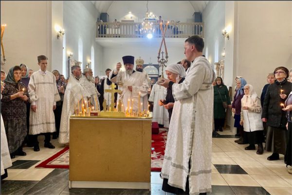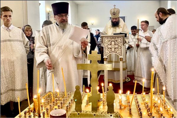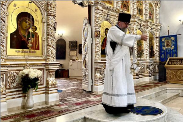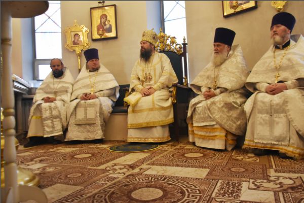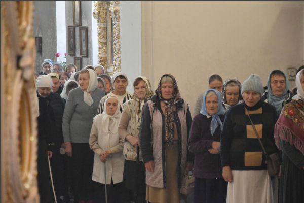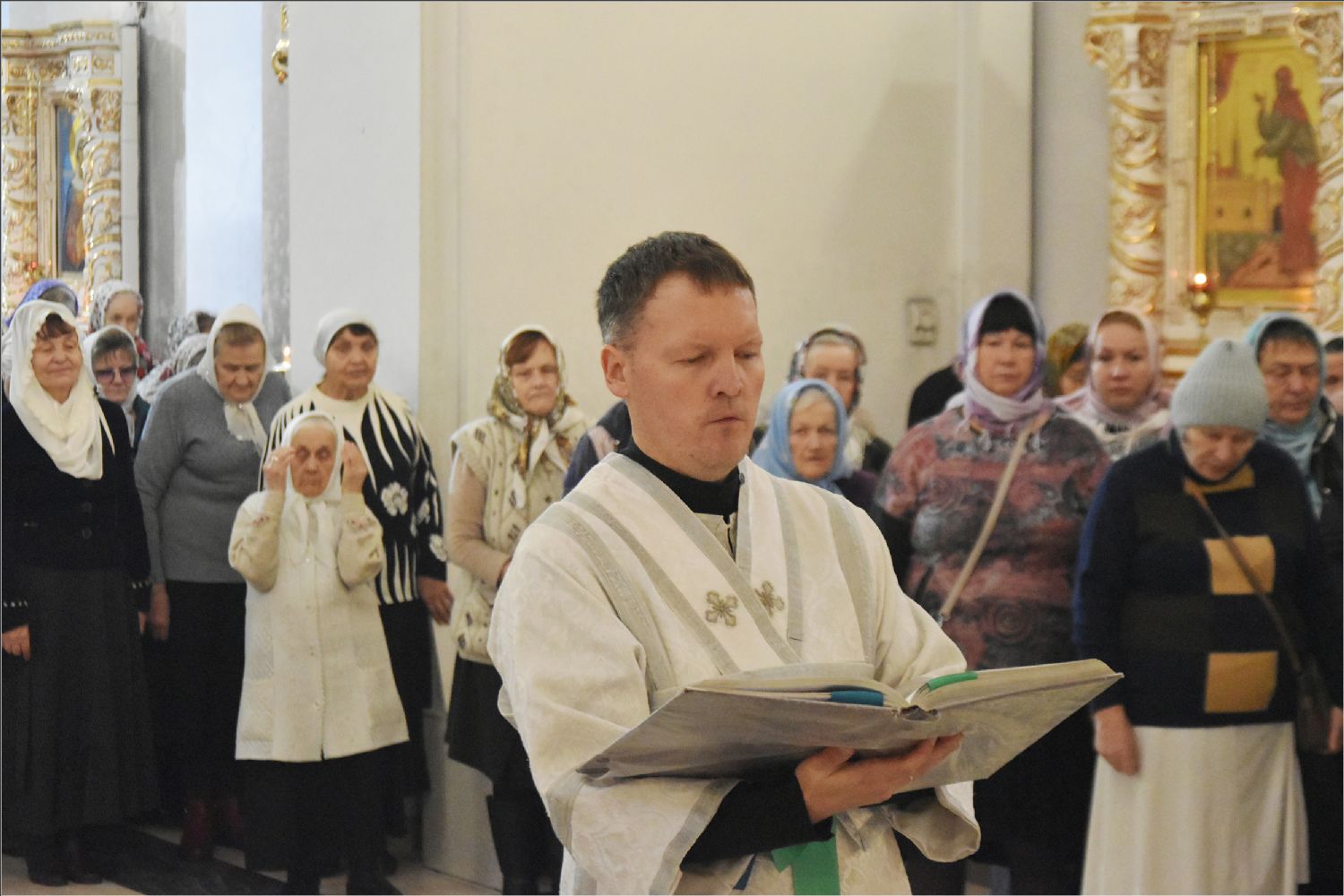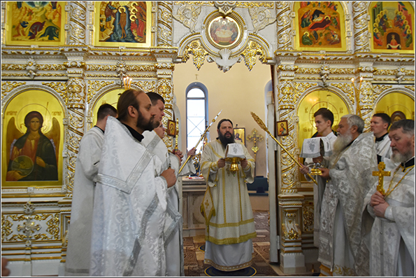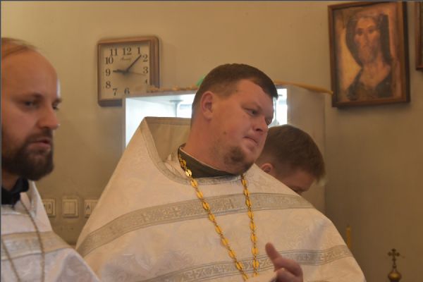На мирной и сугубой ектениях были вознесены молитвенные прошения о Российском воинстве и о мире. По запричастном стихе проповедь произнёс иерей Алексий Носов.