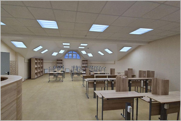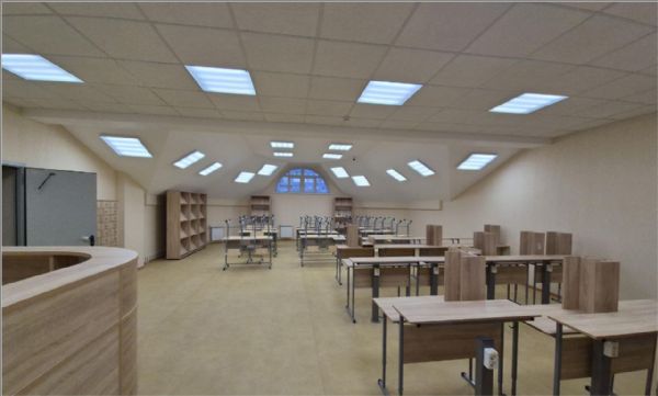 На мансардном этаже есть кабинеты директора, настоятеля, завуча, логопеда, психолога, книгохранилище с читальным залом.