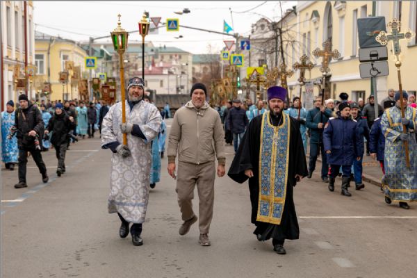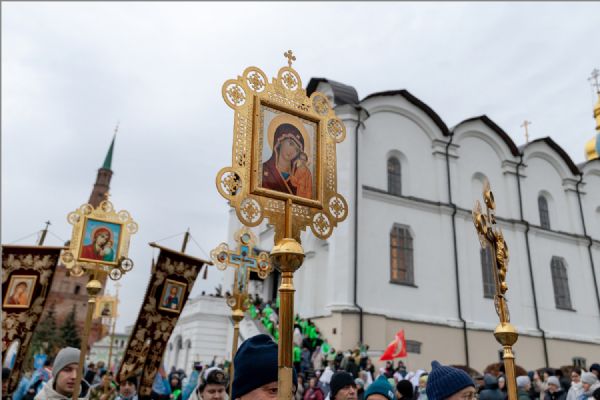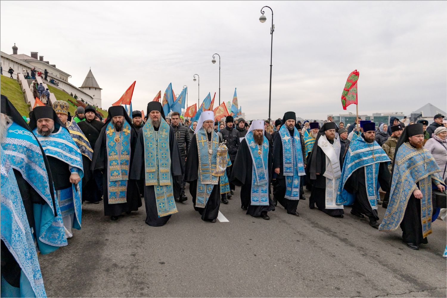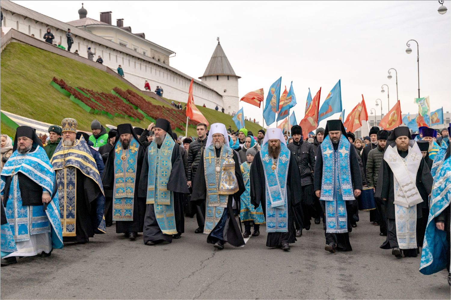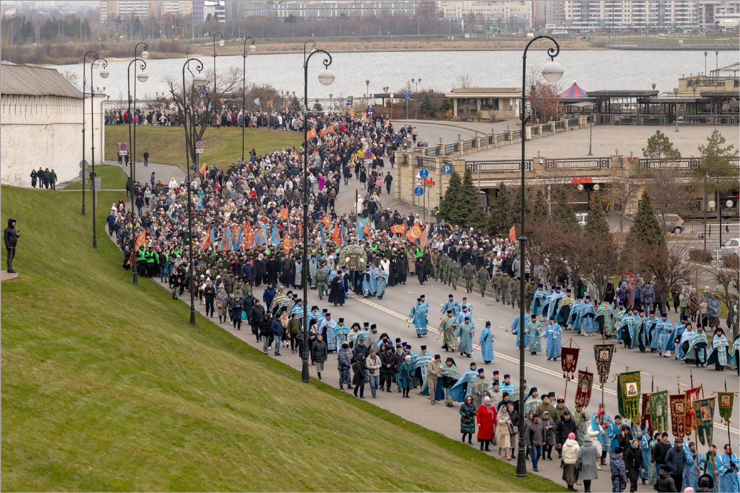 Утром 4 ноября состоялся общегородской крестный ход с чтимым Казанским образом Царицы Небесной из Благовещенского собора Казанского кремля в Казанский Богородицкий монастырь, к месту обретения святыни. Казанская икона Пресвятой Богородицы была внесена в Казанский собор. После принесения чтимого образа началась Божественная литургия.