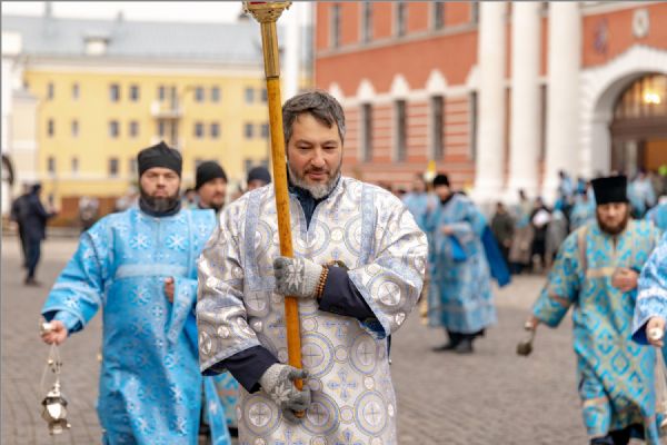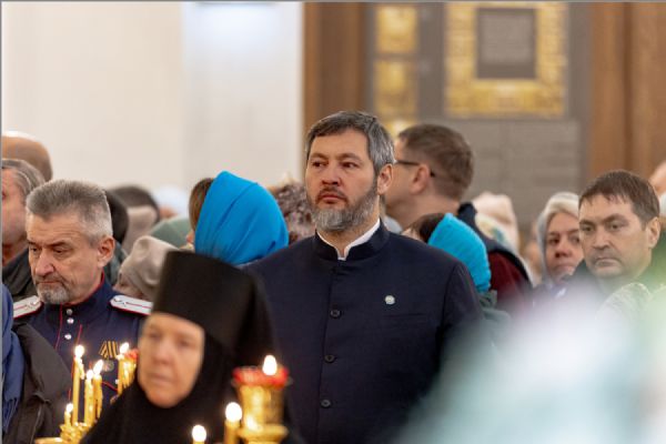 На мирной и сугубой ектениях были вознесены молитвы о Российском воинстве и о мире. Часть молитвословий возносилась на арабском и английском языках. По запричастном стихе проповедь произнёс благочинный I церковного округа города Казани протоиерей Владимир Самойленко.