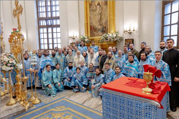 Митрополит Кирилл тепло поприветствовал и поблагодарил за молитвы архипастырей и священнослужителей, прибывших в Казань для участия в церковных торжествах: