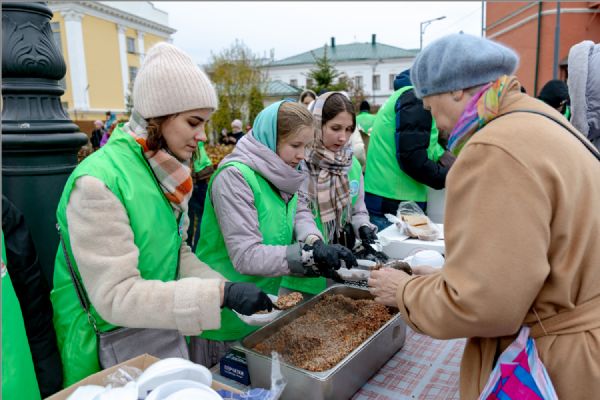 На территории Богородицкой обители была организована трапеза для прихожан и паломников.