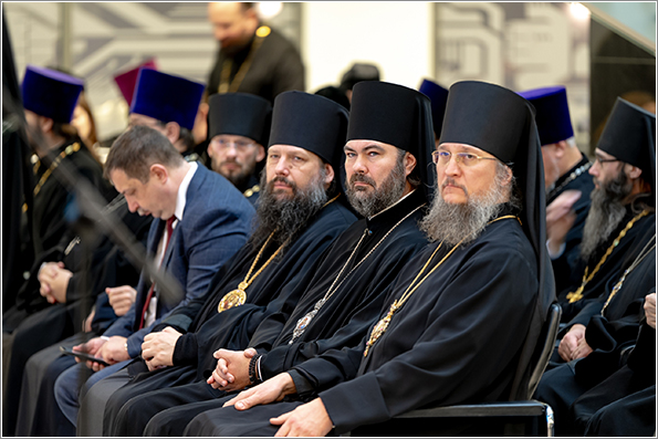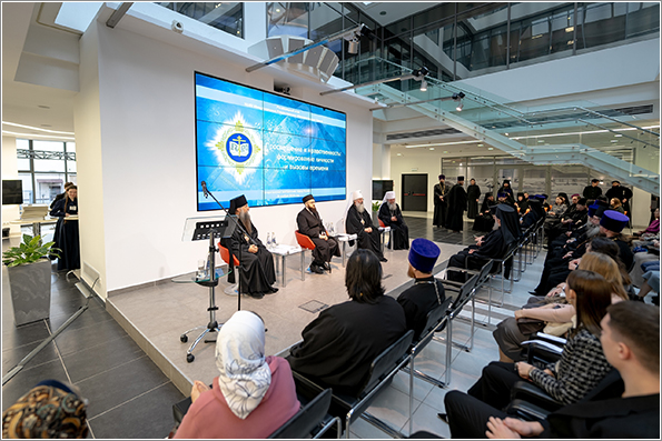 В президиуме присутствовали митрополит Казанский и Татарстанский Кирилл, председатель Синодального отдела религиозного образования и катехизации Русской Православной Церкви митрополит Екатеринбургский и Верхотурский Евгений, муфтий Татарстана Камиль хазрат Самигуллин, ректор Православного Свято-Тихоновского гуманитарного университета епископ Егорьевский Мефодий.
