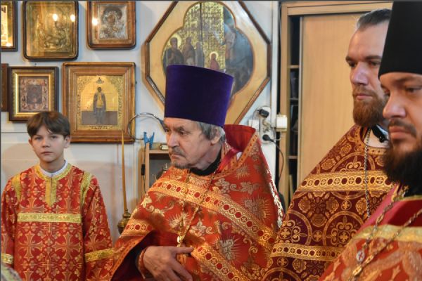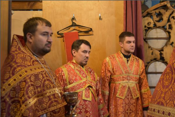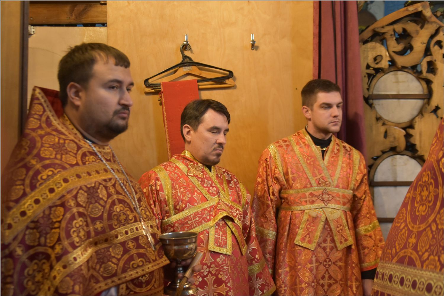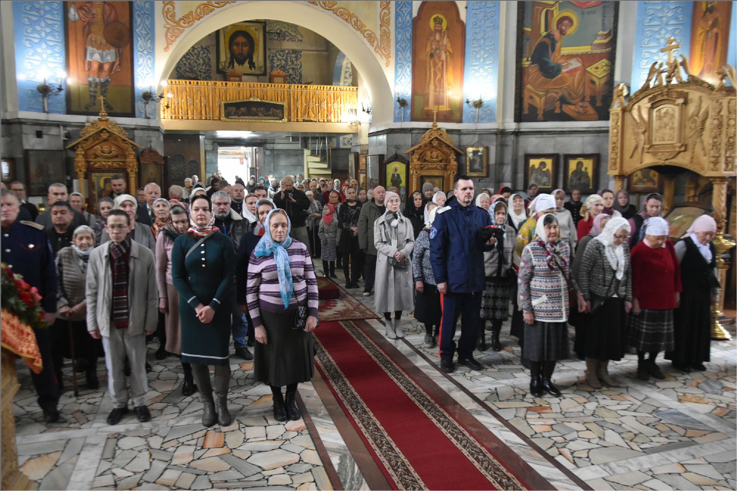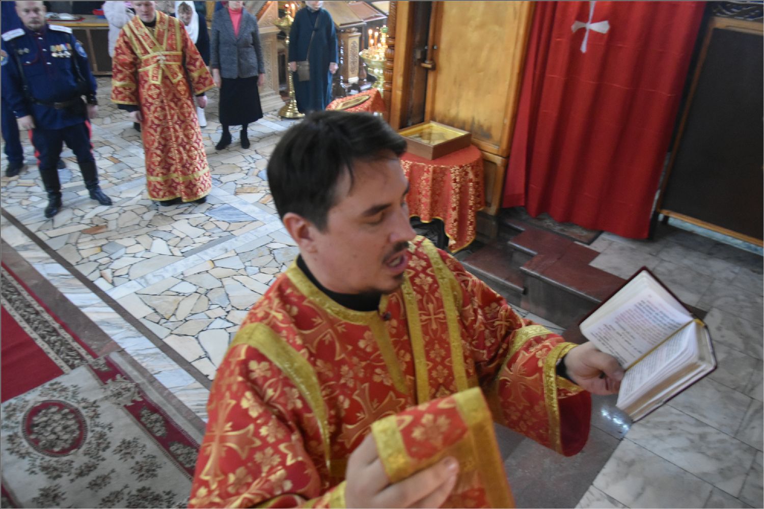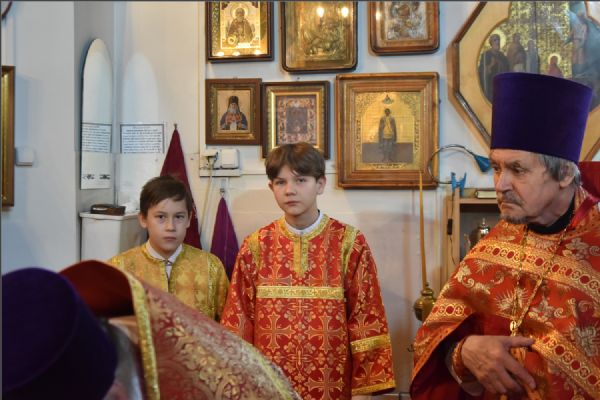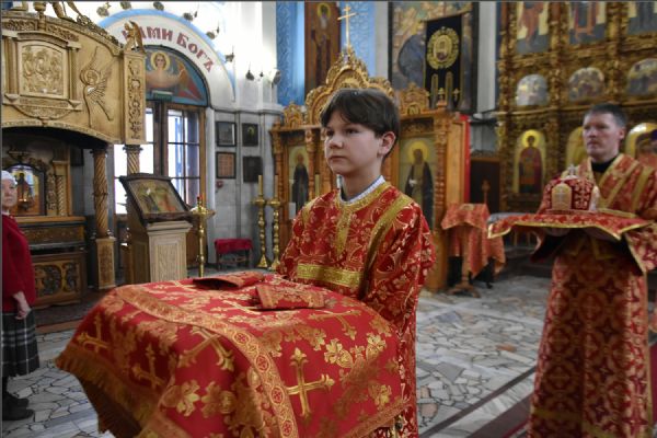 На мирной и сугубой ектениях были вознесены молитвы о Российском воинстве и о мире. По запричастном стихе проповедь произнёс иерей Александр Миронов.