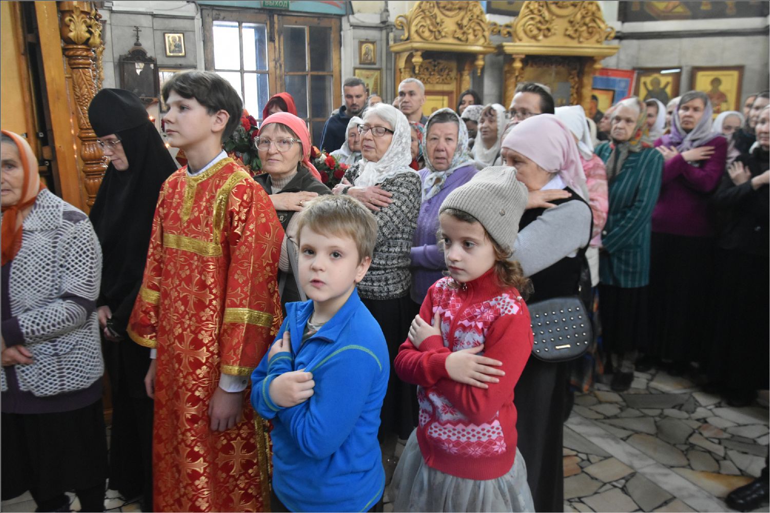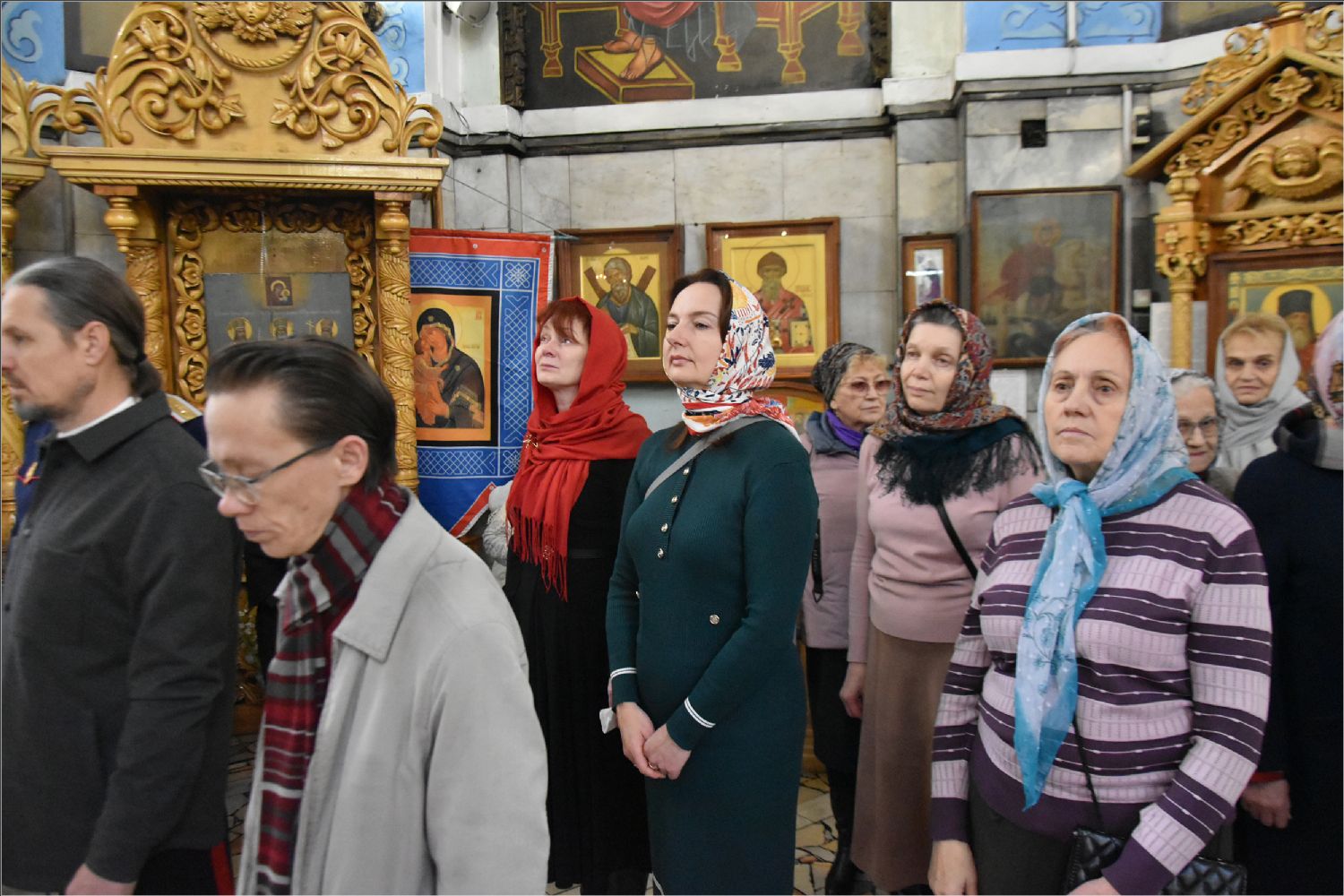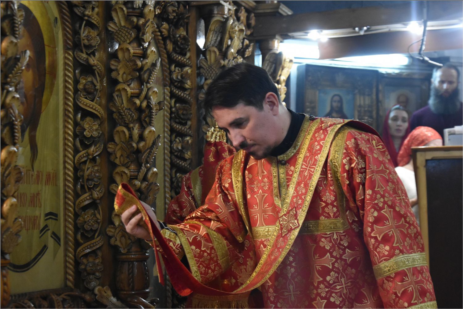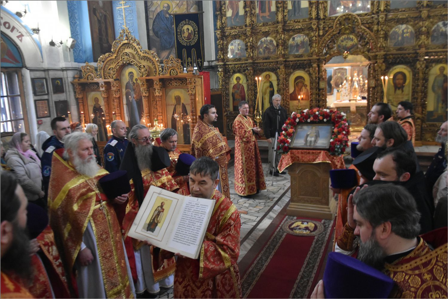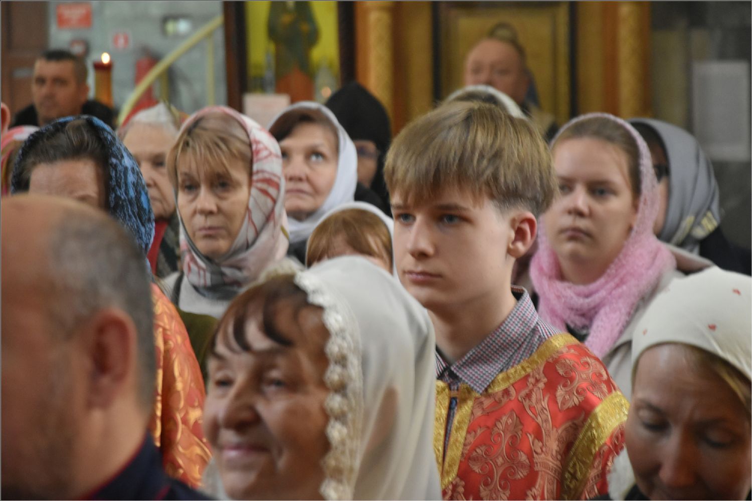 На мирной и сугубой ектениях были вознесены молитвы о Российском воинстве и о мире. По запричастном стихе проповедь произнёс иерей Александр Миронов.