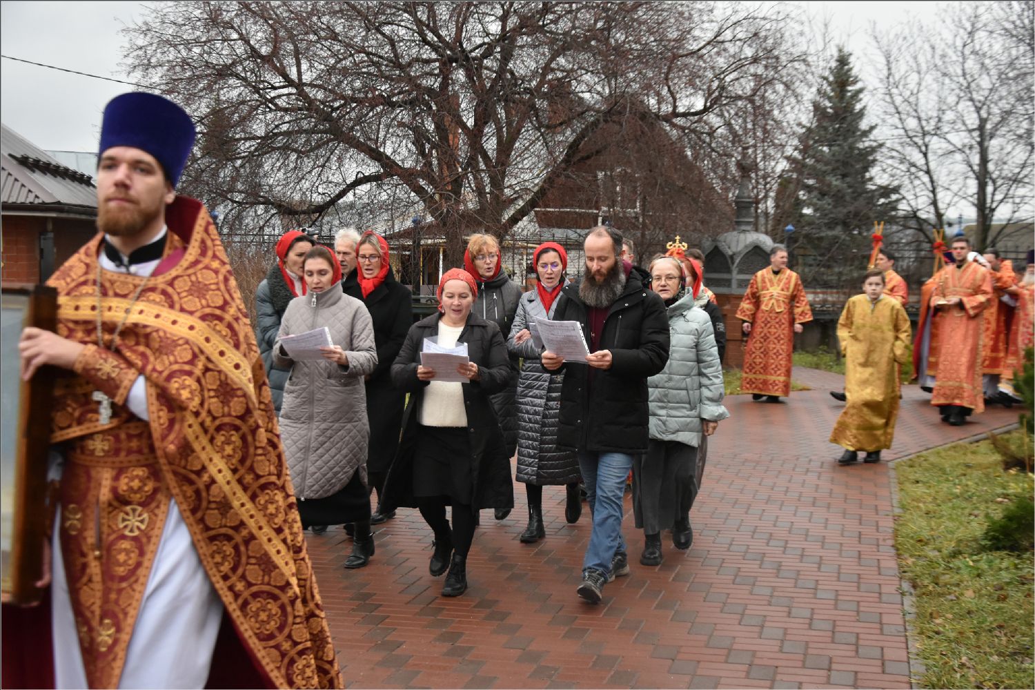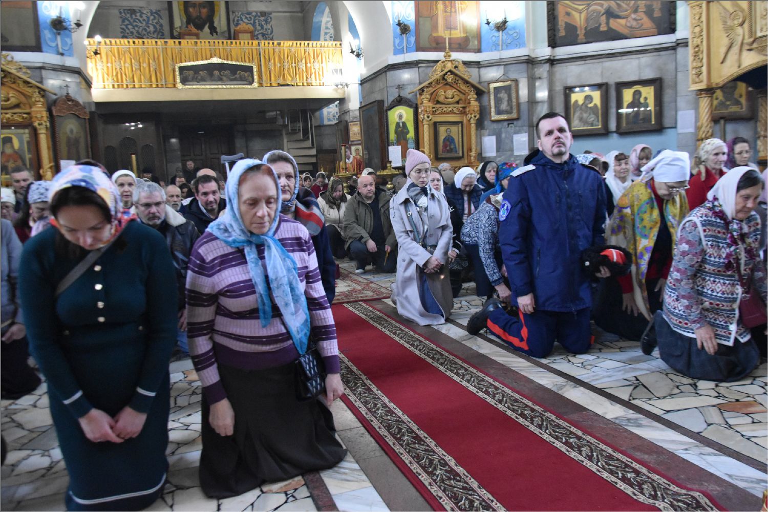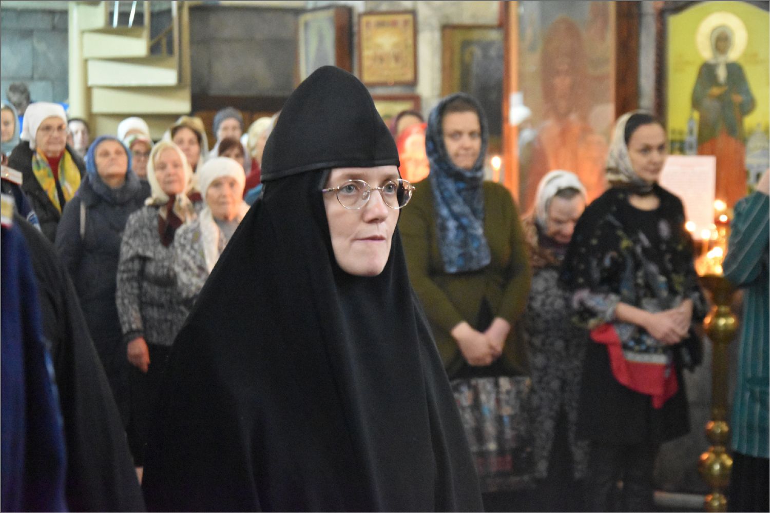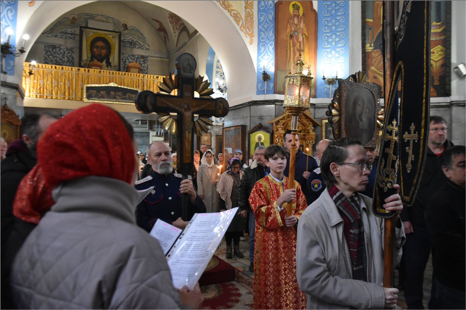 На мирной и сугубой ектениях были вознесены молитвы о Российском воинстве и о мире. По запричастном стихе проповедь произнёс иерей Александр Миронов.