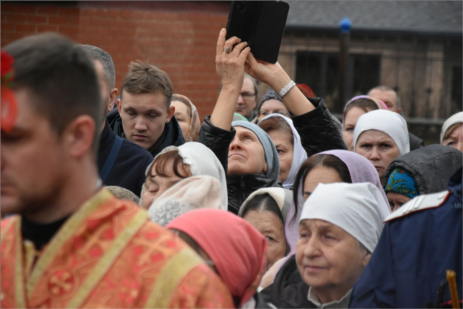 Давайте же горячо помолимся о том, чтобы воистину этот храм был нерушим. Чтобы никакие невзгоды и беды не погубили наш народ, грядущие поколения православных христиан. Помолимся о том, чтобы наши дети, внуки, правнуки и праправнуки в этом храме славили Господа и Спасителя нашего Иисуса Христа. Помолимся горячо о воинах, которые сегодня погибают на полях сражений. Помянем всех усопших, некогда служивших и трудившихся в этом храме, восстанавливавших его — всех, кого вы вспомните».