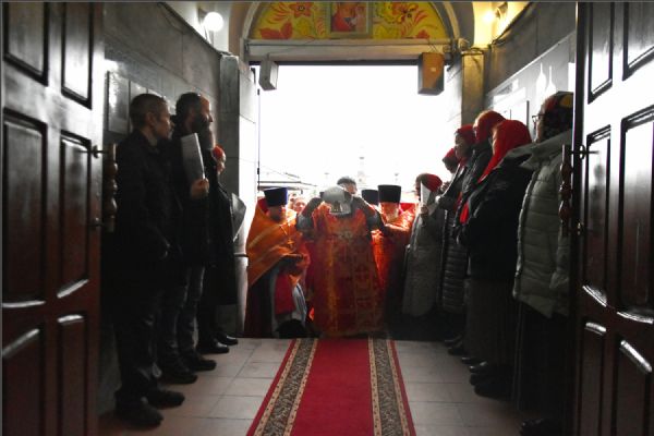 По окончании чина освящения архипастырь возглавил служение первой Литургии в новоосвященном храме. Перед ее началом архипастырь обратился к собравшимся в храме: